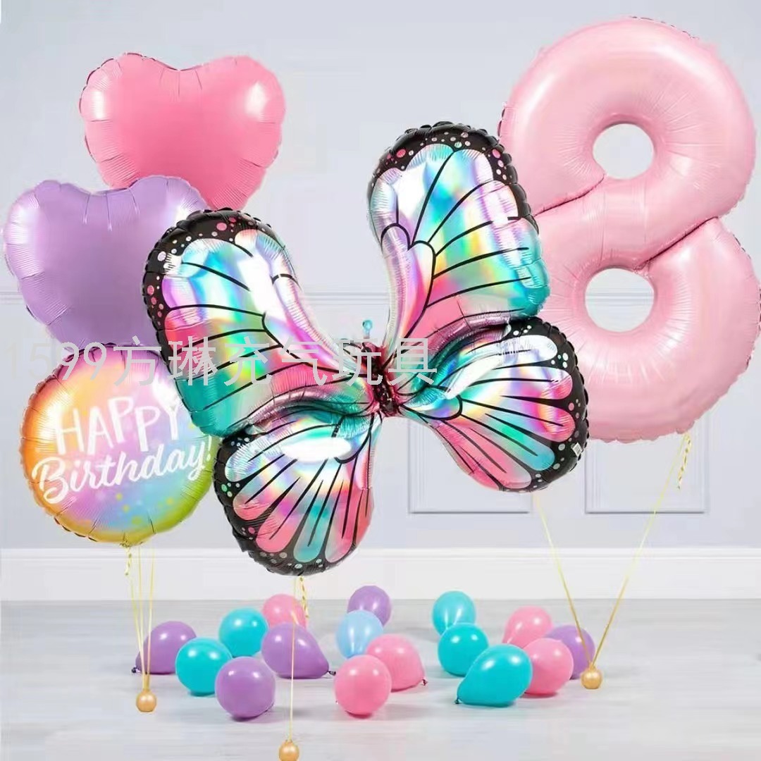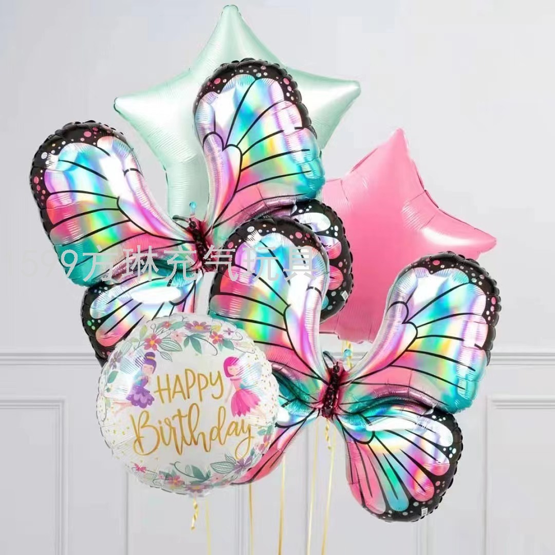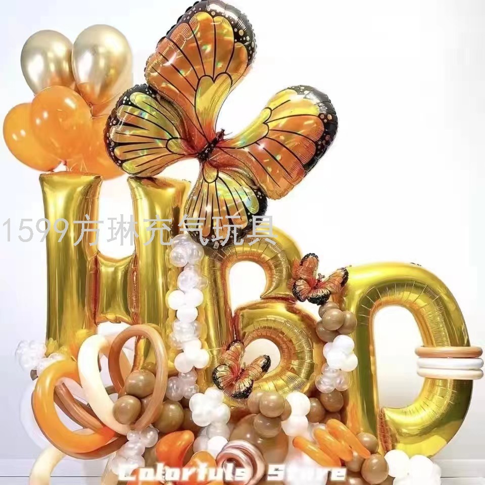 cross-border hot sale factory direct sales butterfly modeling set aluminum balloon birthday party wedding celebration decoration layout 中文版