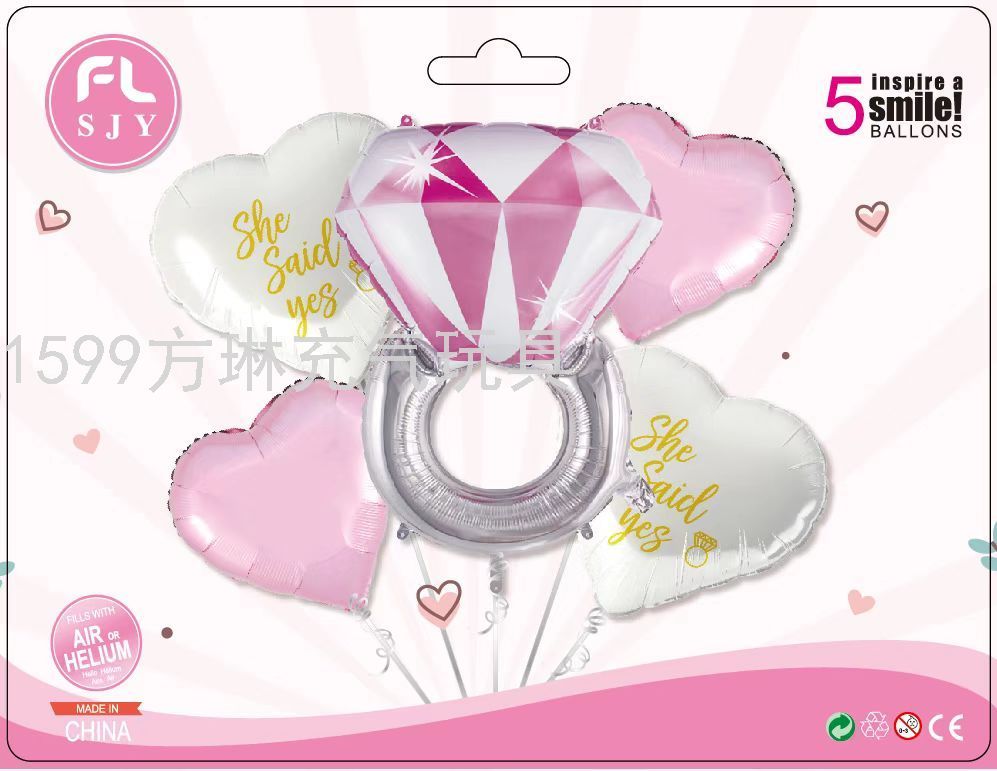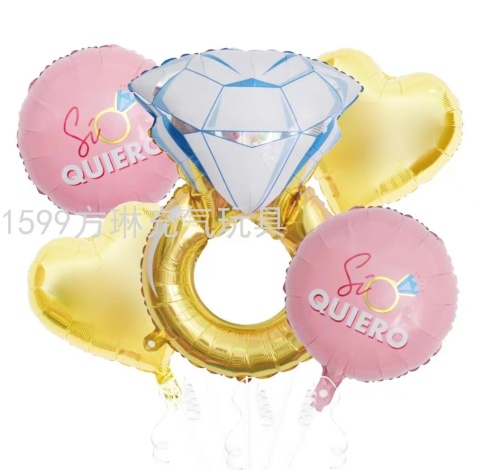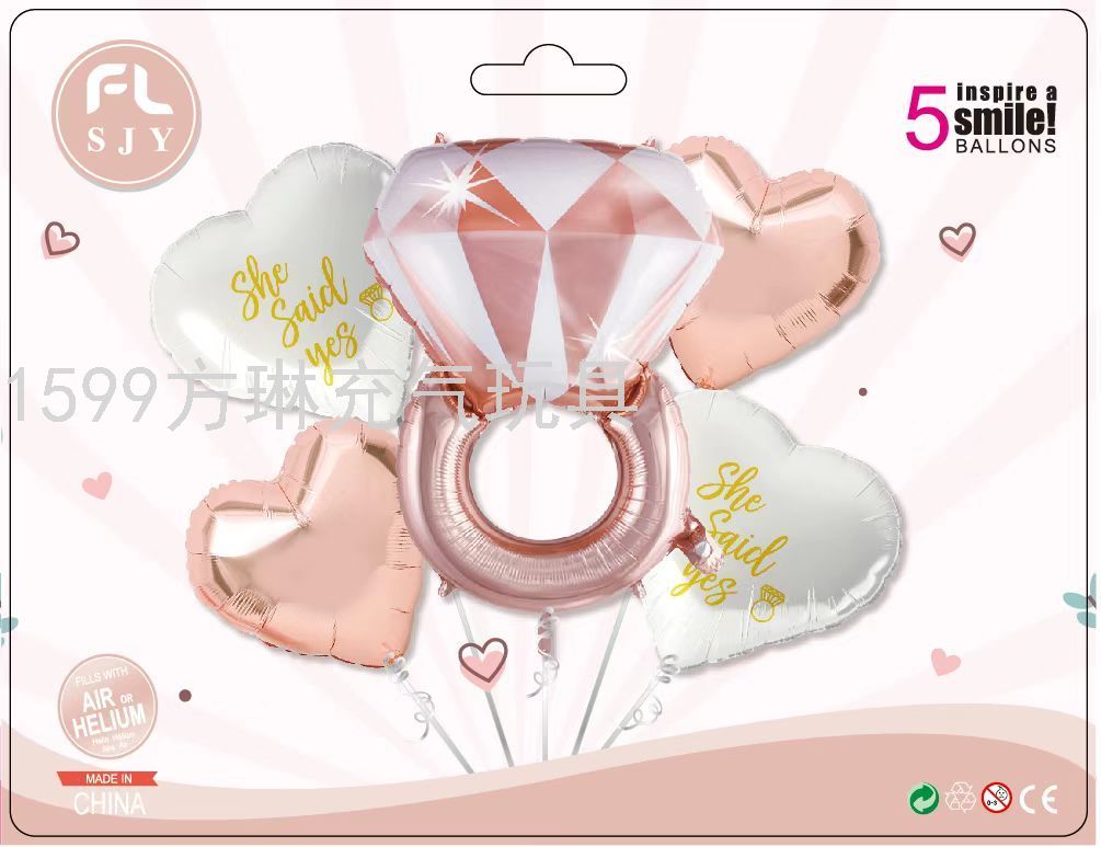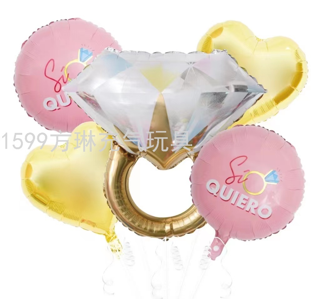 cross-border hot sale wedding diamond ring modeling set aluminum balloon birthday party wedding celebration decoration layout factory direct sales 中文版