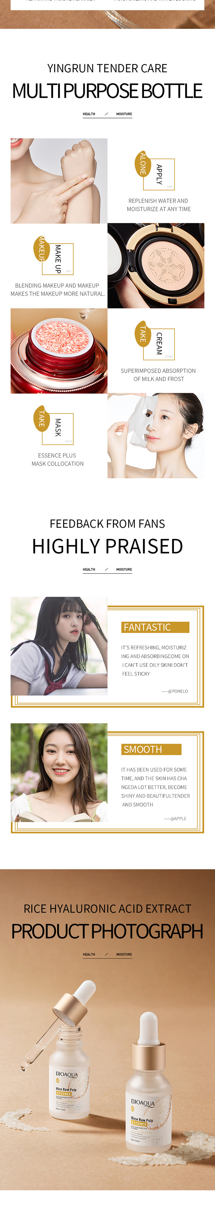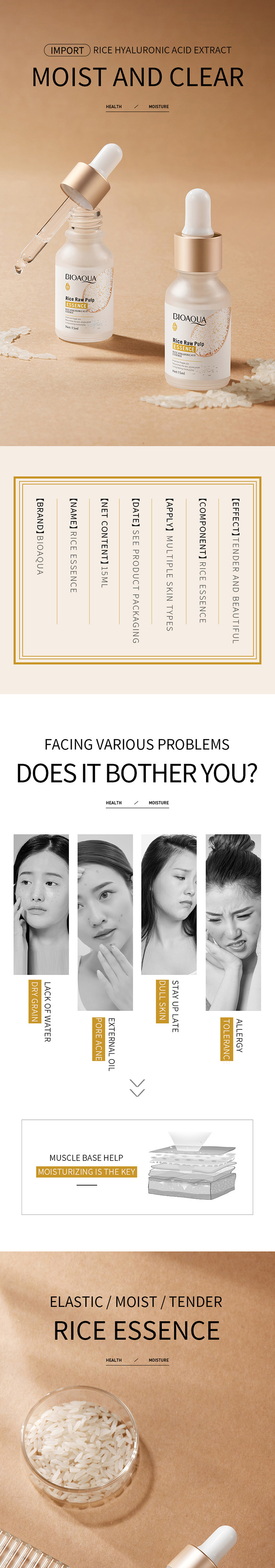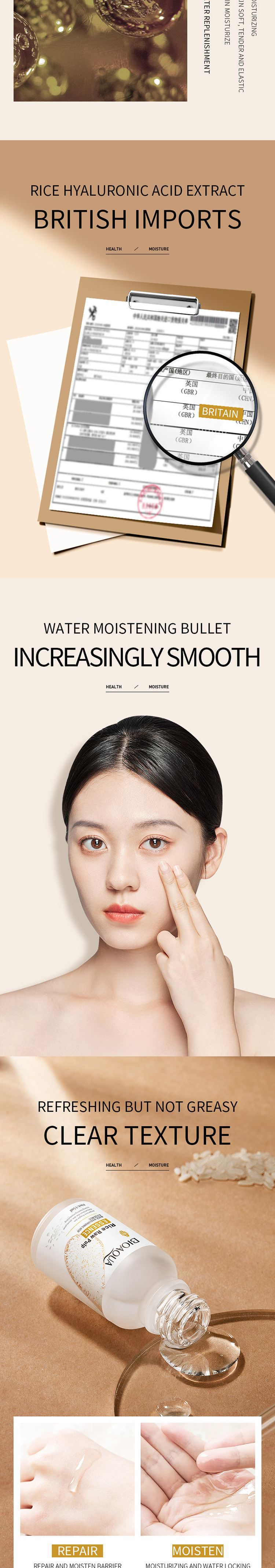 bioaoua rice essence moisturizing hydrating whitening skin color 中文版