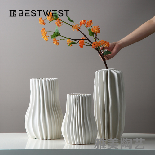 best west ins white 3d printing ceramic vase model room soft decoration large dried flower decorations