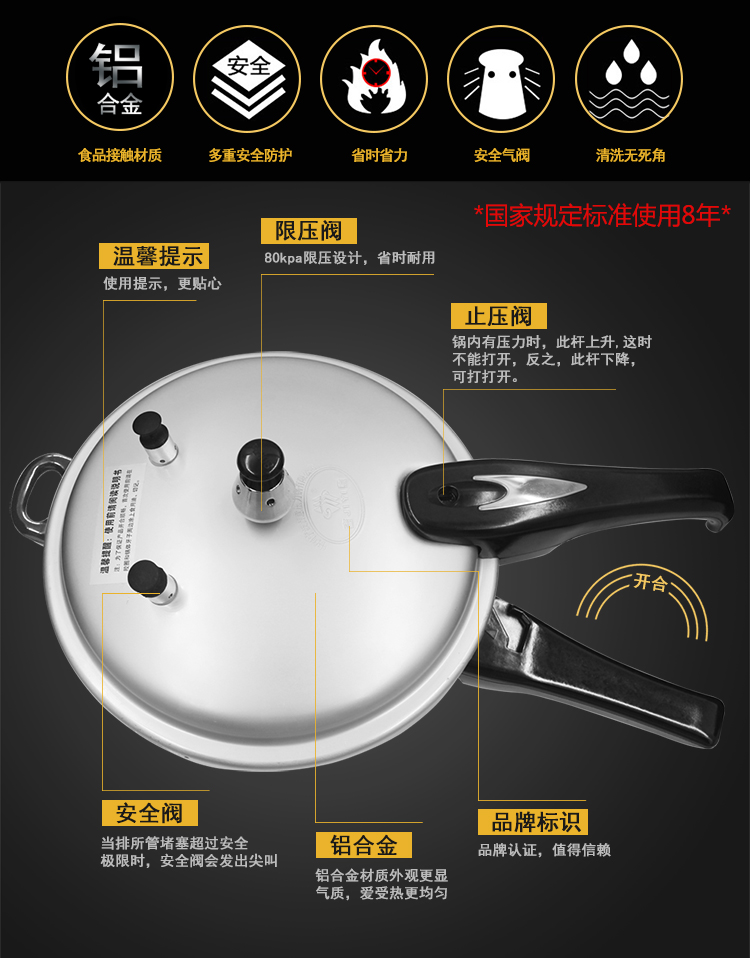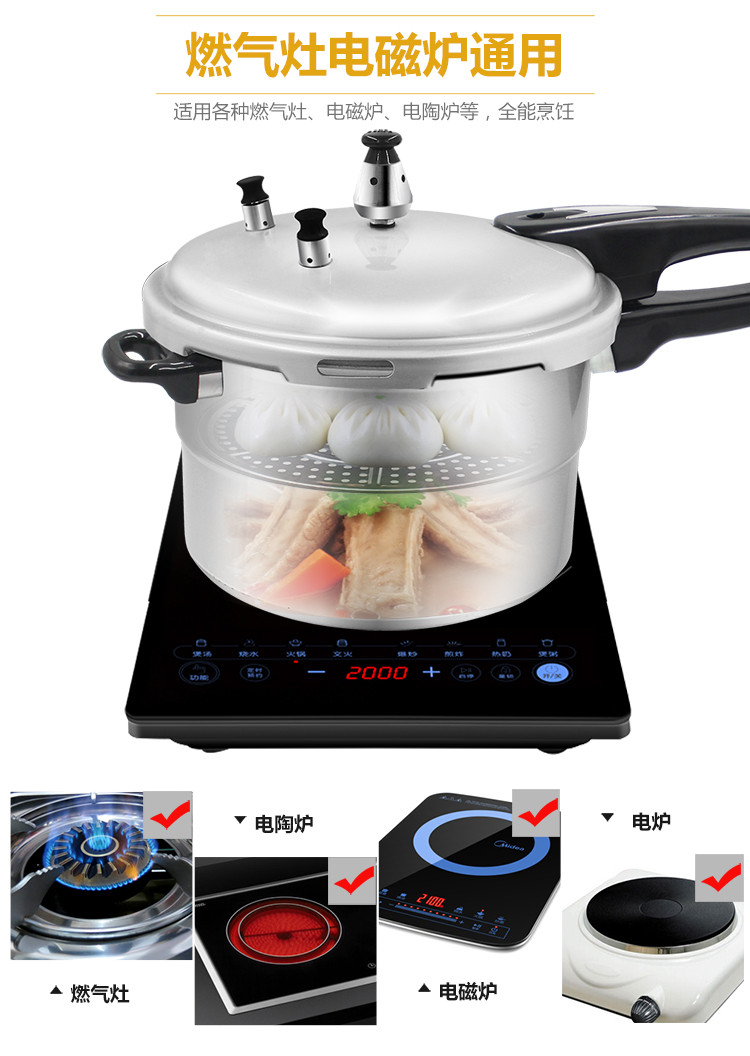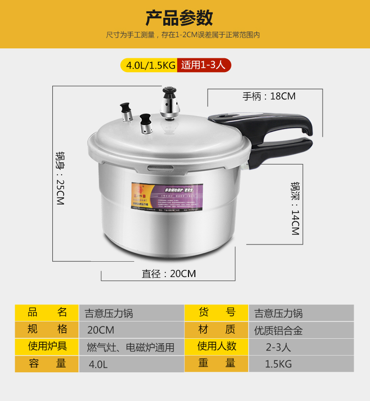 Pressure Cooker Gas Household 20 22 24 26cm Induction Cooker Universal Explosion-Proof pressure Cooker 1-2-3-4-5-6 People 中文版
