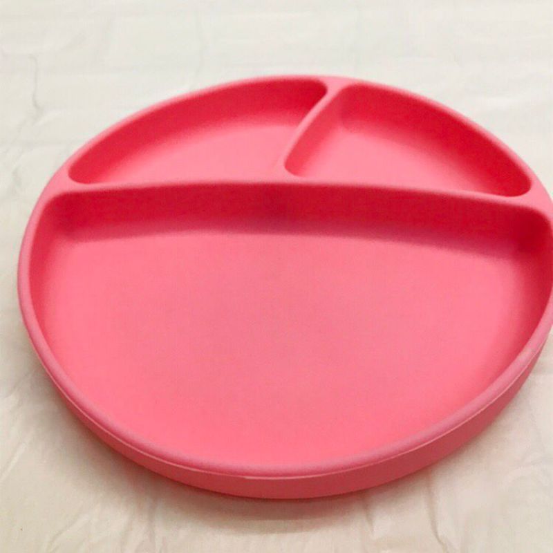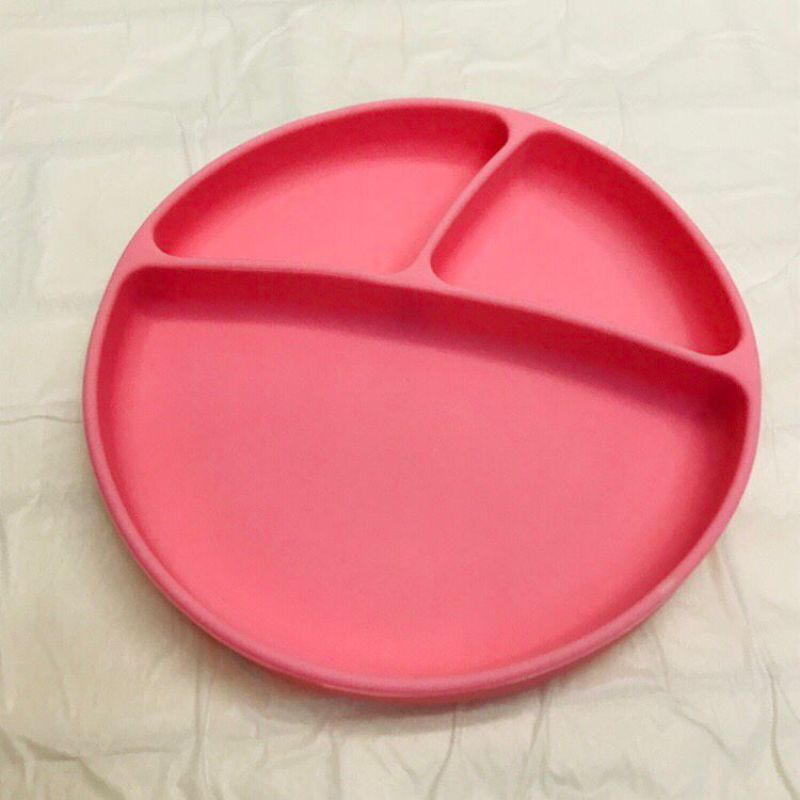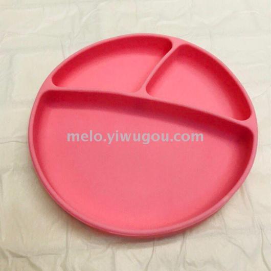 Silicone round Three-Lattice Plate, Silicone Strong Sucker Plate, Silicone Baby Children's Dinner Plate