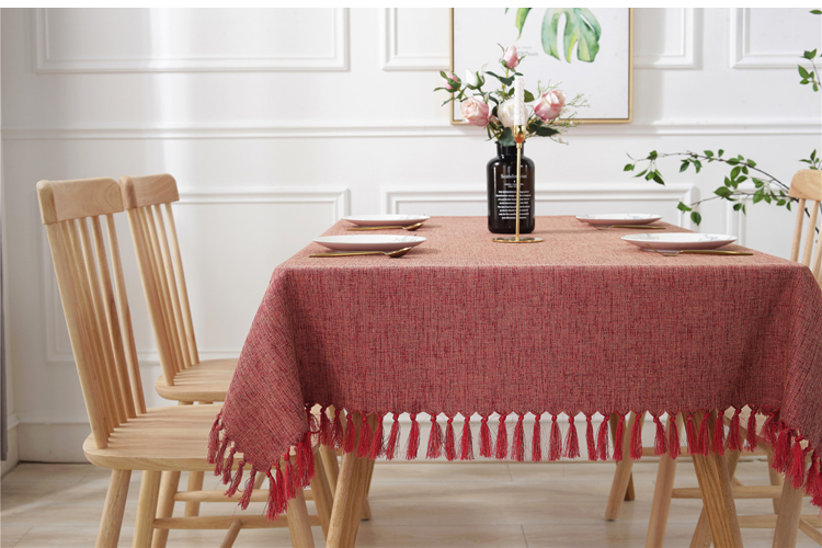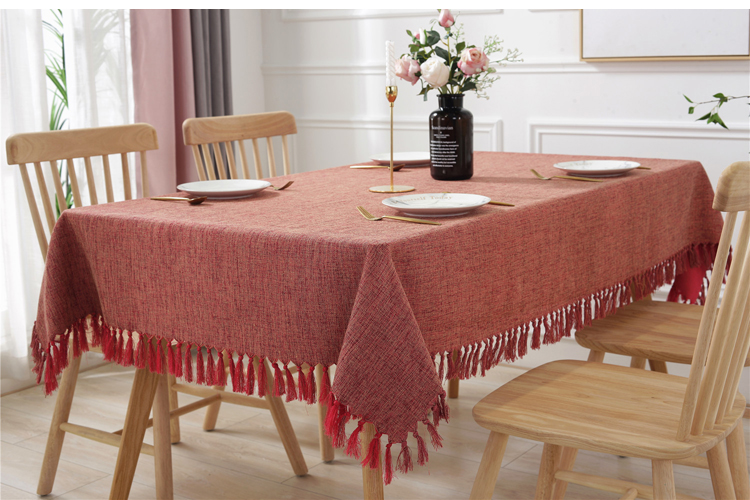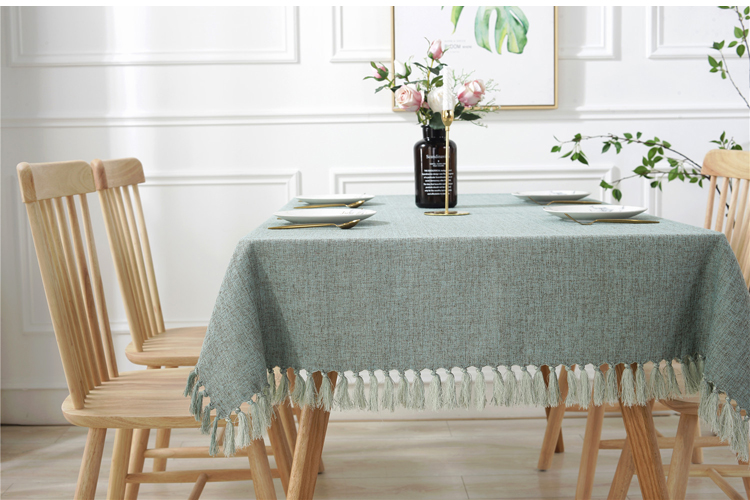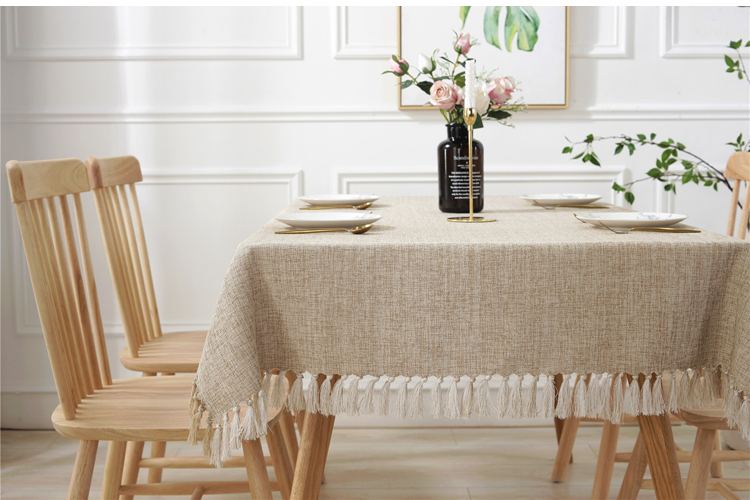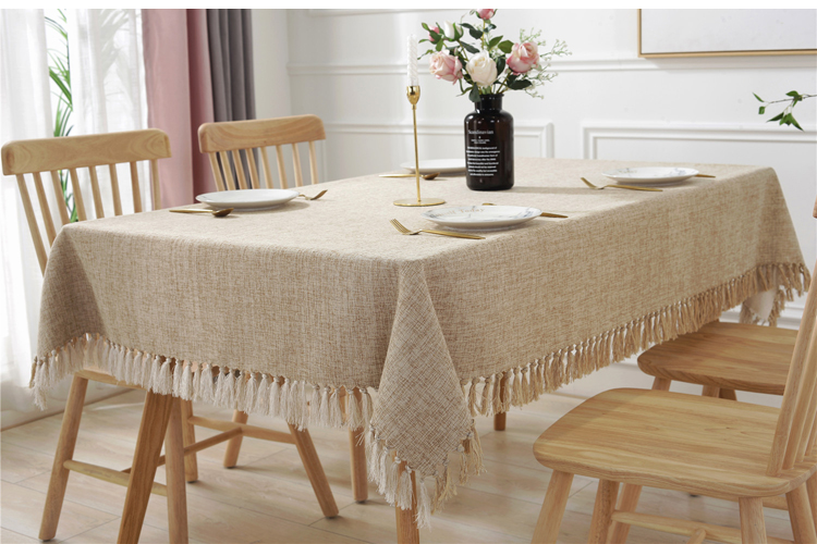 Cotton and Linen Tassel Blend Tablecloth, Tablecloths can be customized