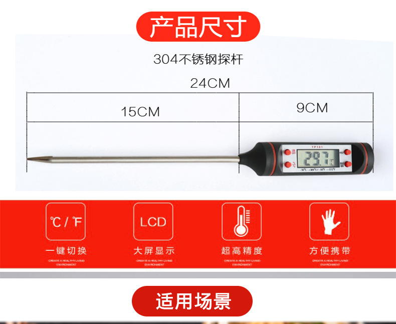 Multi-functional -- Celsius (℃) to Fahrenheit (°F) conversion at will, suitable for cooling, heating, and home kitchens.