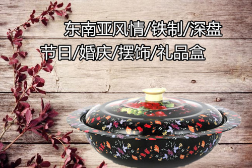 iron paint basin tinplate household deep plate southeast asian ethnic style printing capping pot flower pot fruit plate wedding plate 中文版