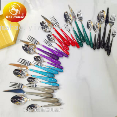 Stainless Steel Rainbow Handle Tableware Knife Rack Pack 24pcs