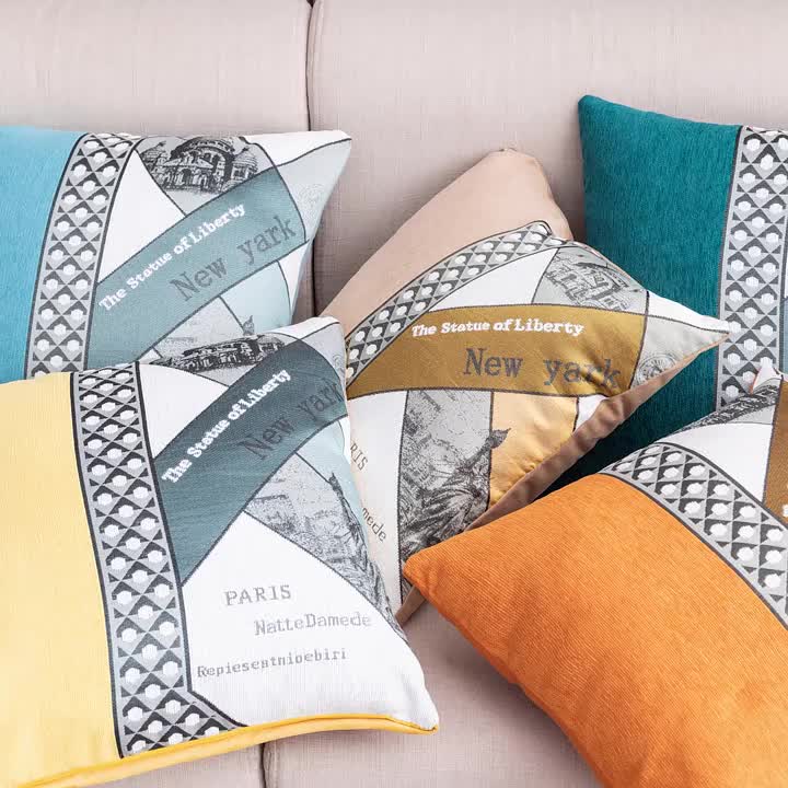 Cross-Border Ins Simple Fashion Living Room Backrest Pillow Chenille Jacquard Sample Room Decoration Bedside Bay Window Pillow 中文版