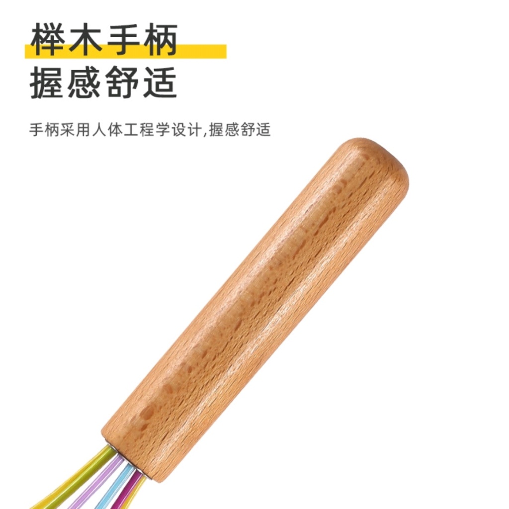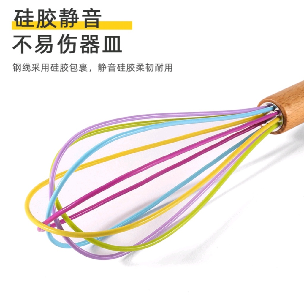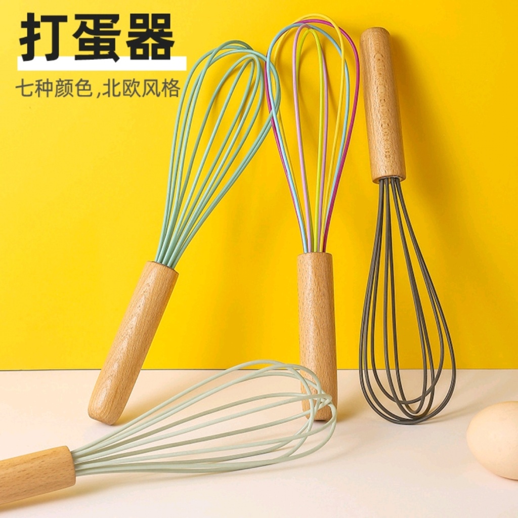 factory in stock silicone eggbeater manual cake with wooden handle cream maker kneading mixer baking tool