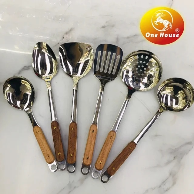 Stainless Steel round Hole Wooden Handle Kitchenware 中文版