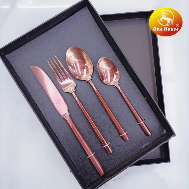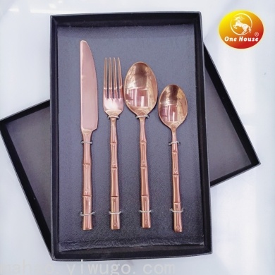 Gold Stainless Steel Tableware Knife, Fork and Spoon Spoon Set 中文版