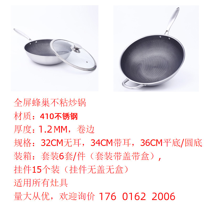 non-stick pan stainless steel frying pan composite bottom wok full screen uncoated honeycomb non-stick pan tempered glass cover 中文版