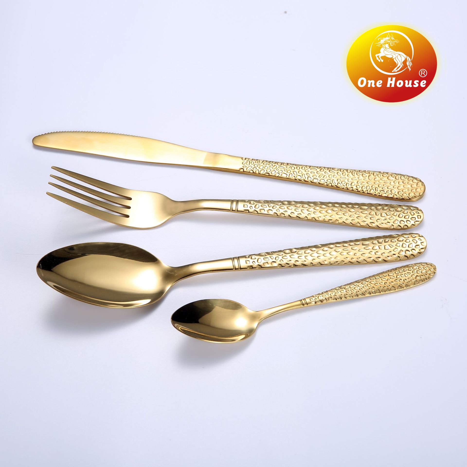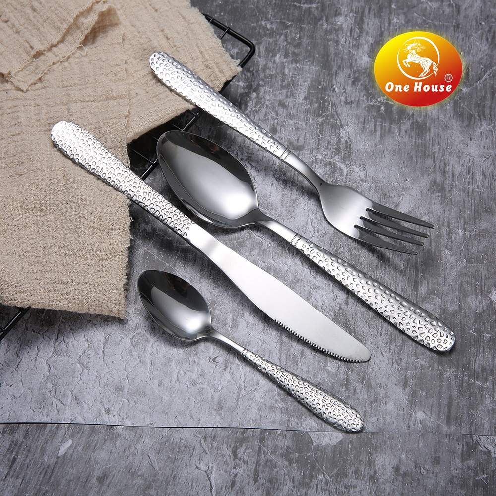 Stainless Steel Water Ripple Handle Knife, Fork and Spoon Spoon Set 中文版