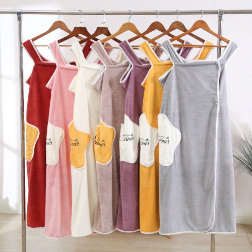 High-density coral fleece bath skirt is soft and absorbent, and can be worn with a wrapped bath towel.