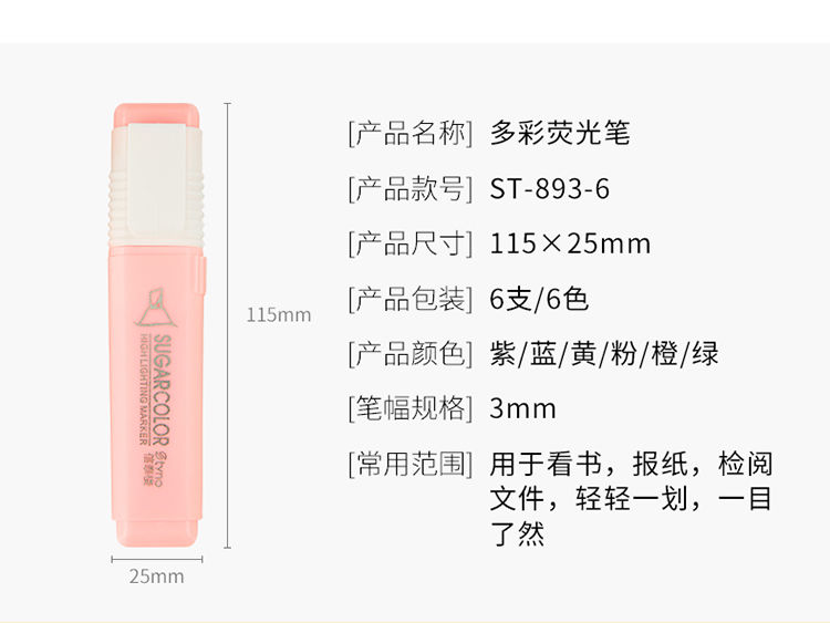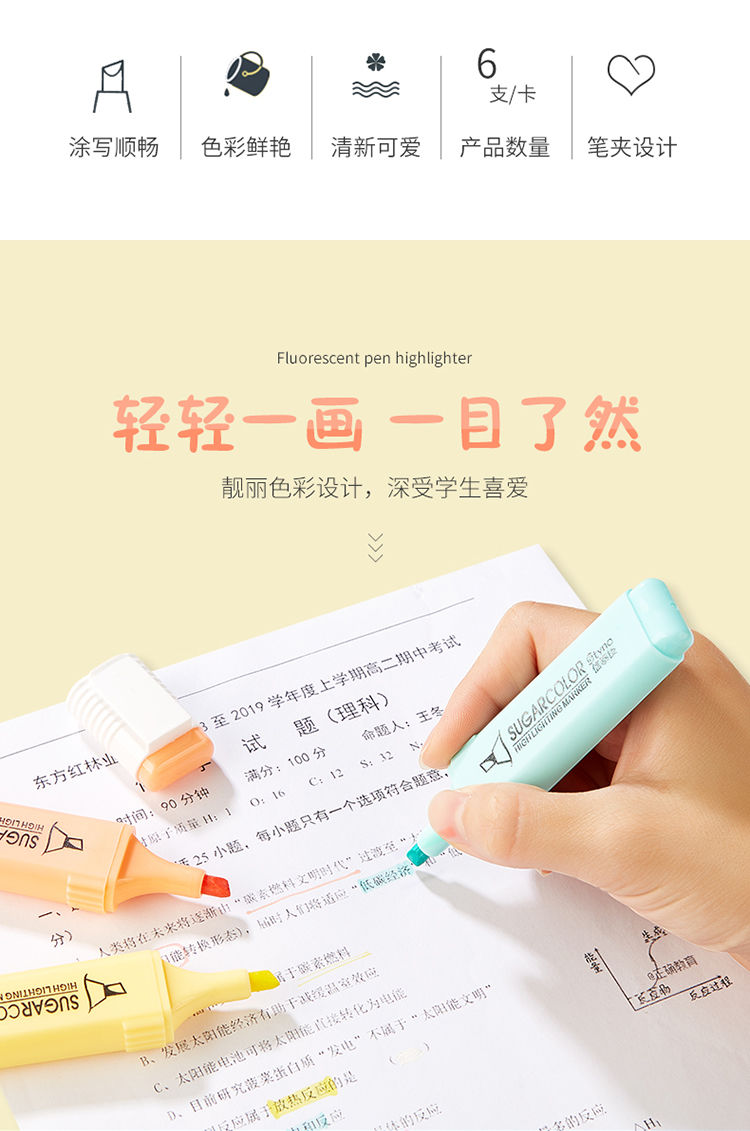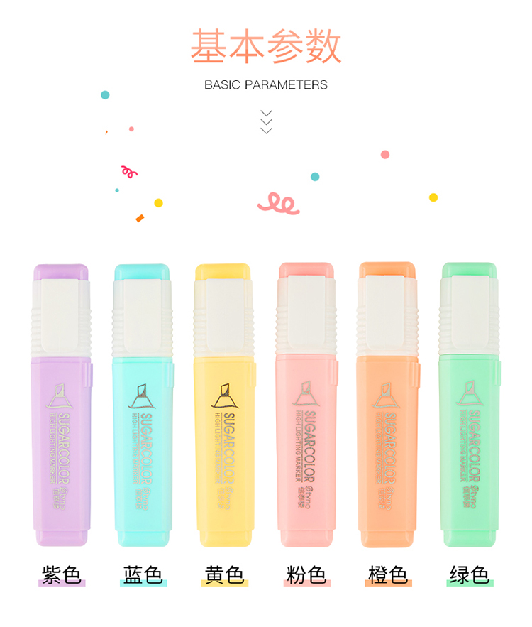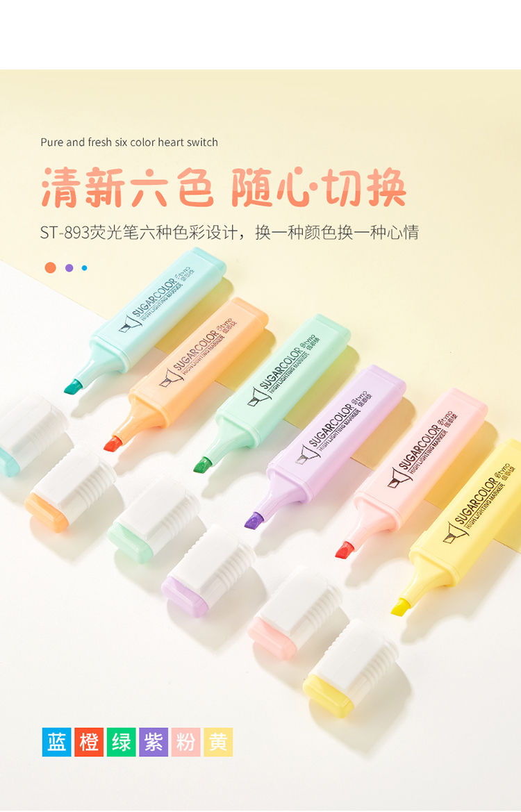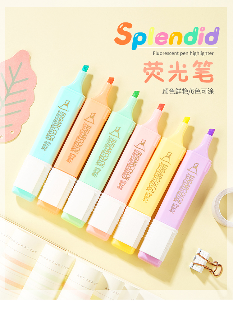 fluorescent pen set of 6 colors