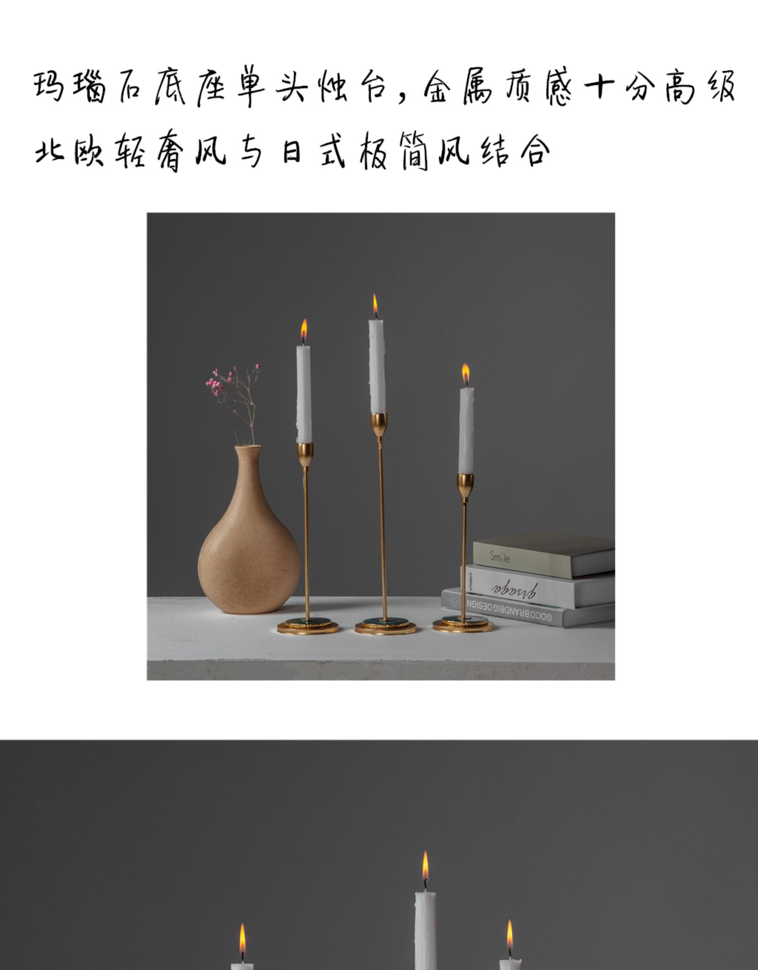 nordic style iron art modern simple and light luxury agate stone aromatherapy candlestick bedroom dining table photography prop decoration 中文版