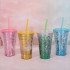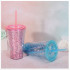 double layer flat lid plastic sippy cup student portable color shimmering powder sequins cup customization 中文版