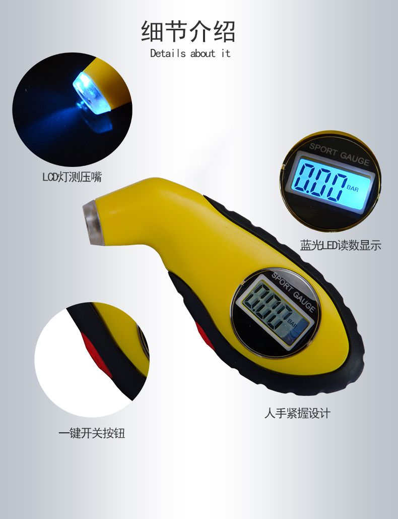 High Precision Car Tire Pressure Gauge LCD Number Display Barometer Electronic Digital Display Tire Pressure Gauge 中文版