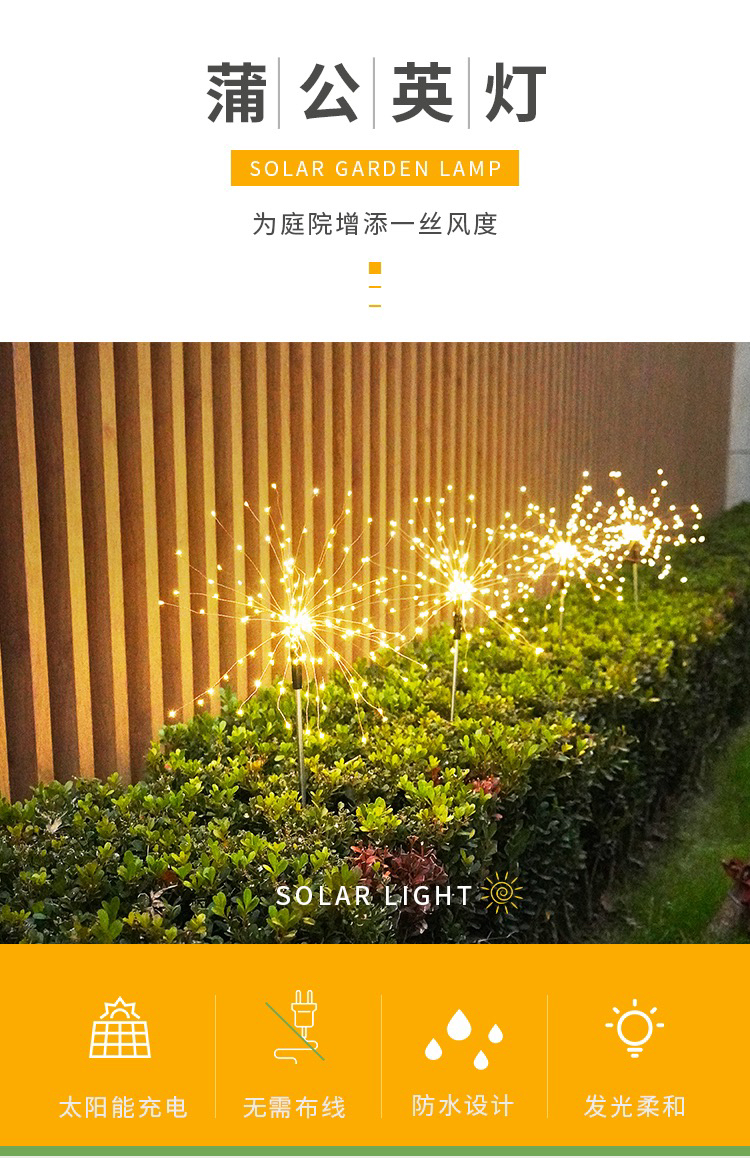 solar fireworks lamp dandelion lamp outdoor waterproof solar christmas lamp grass garden park layout 中文版