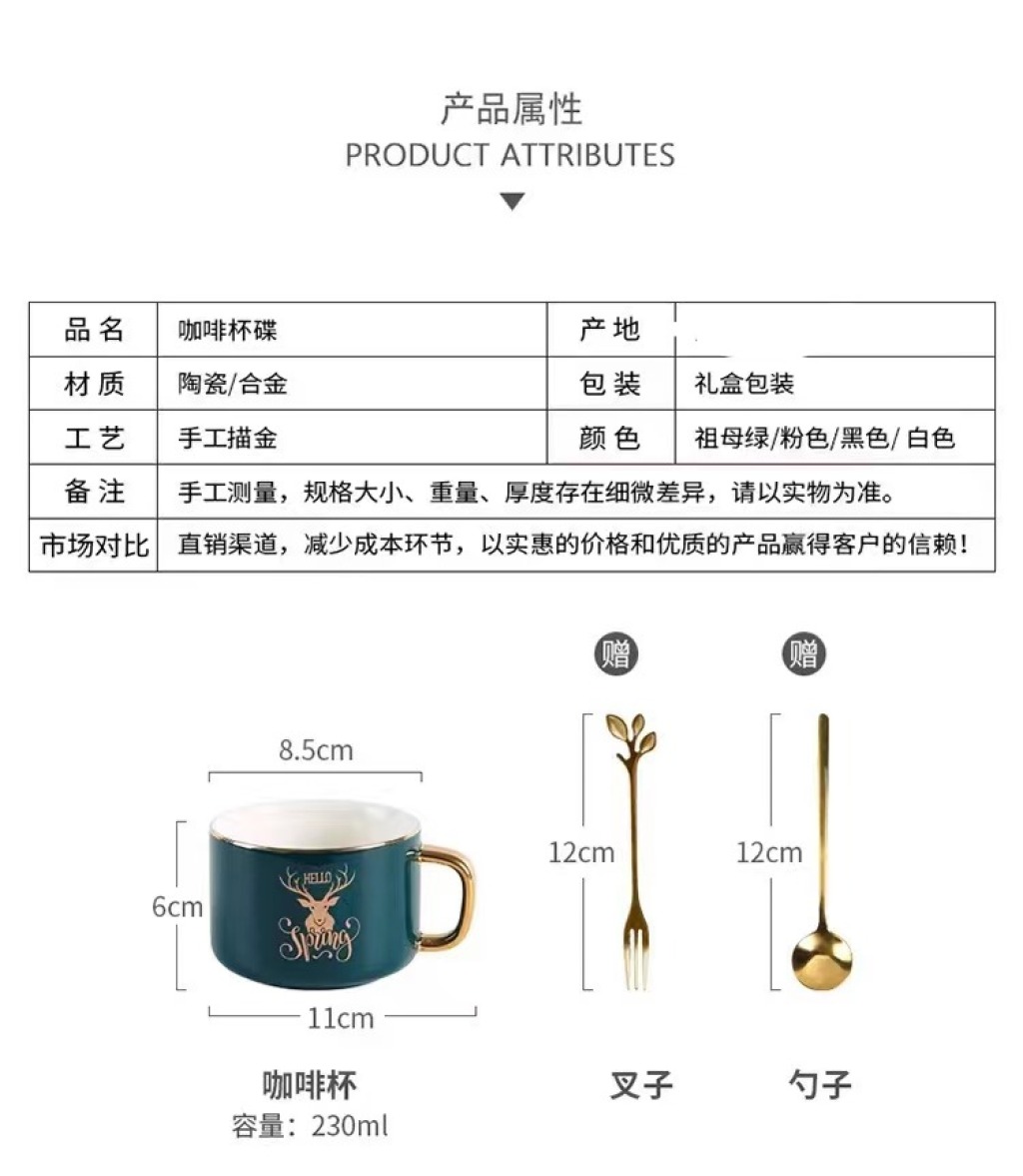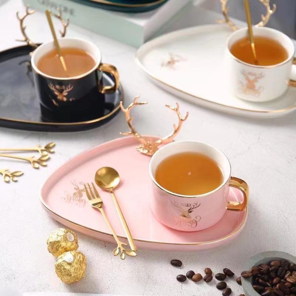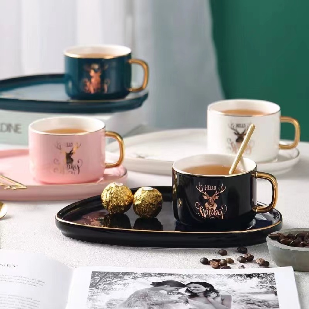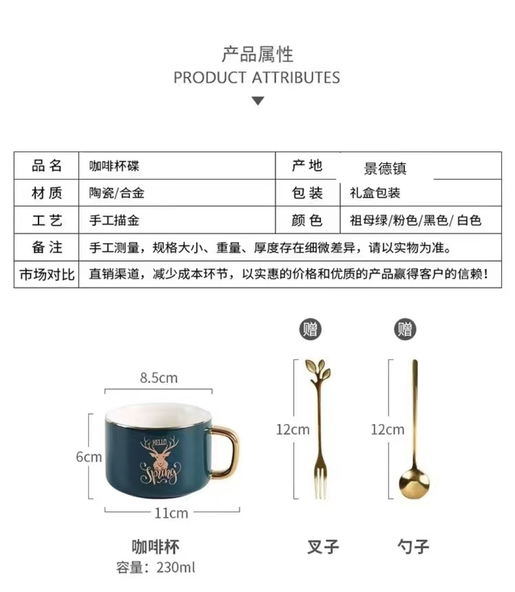 jingdezhen ceramic coffee set gold plated coffee set cup, dish and spoon suit european coffee set ceramic cup kitchen supplies
