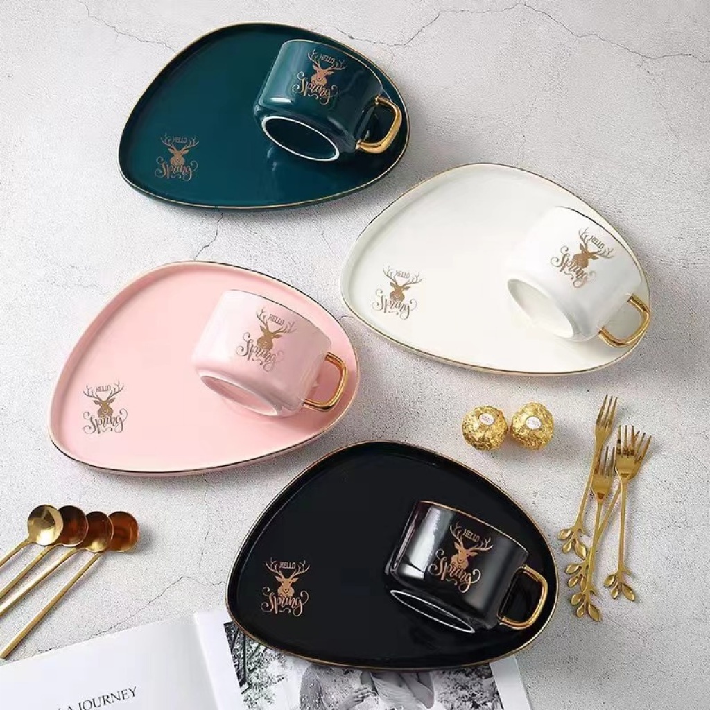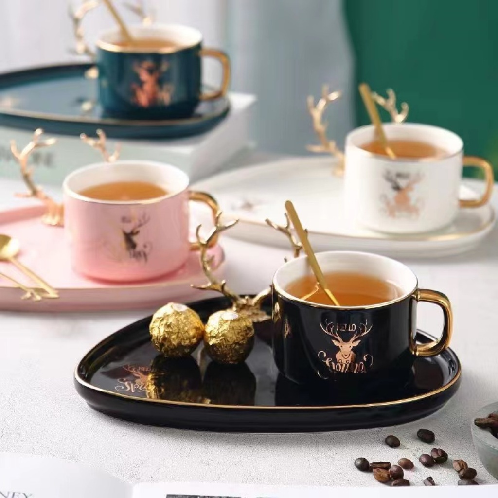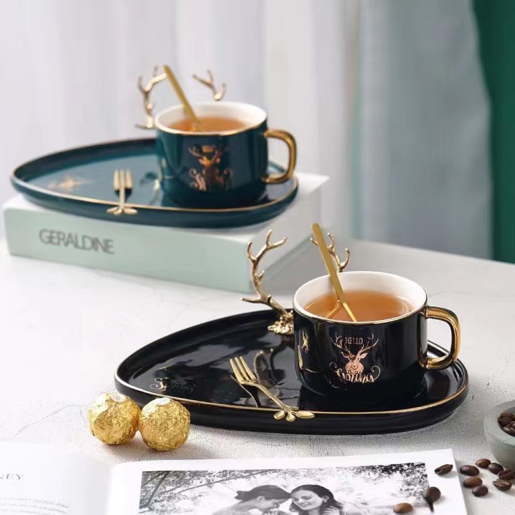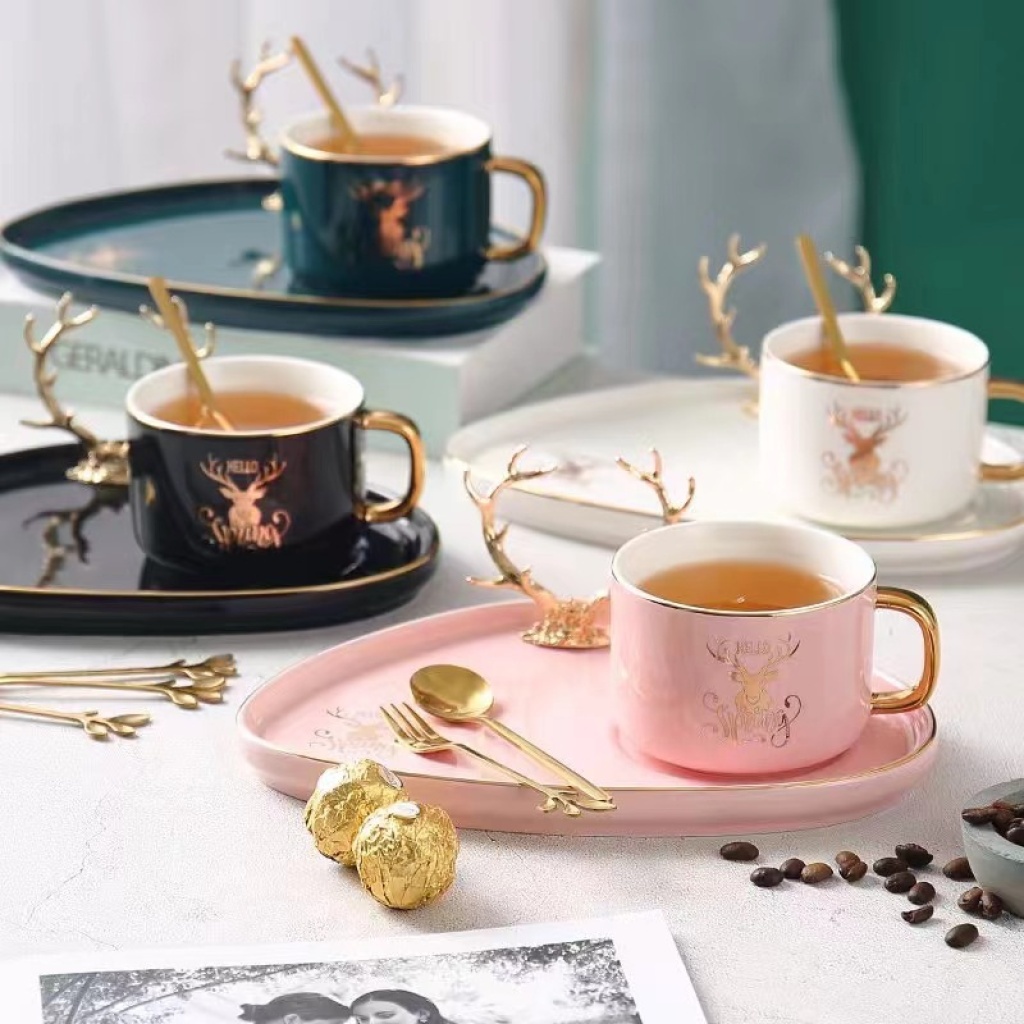 jingdezhen ceramic coffee set gold plated coffee set cup, dish and spoon suit european coffee set ceramic cup kitchen supplies