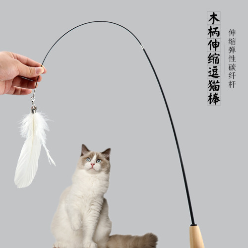 Direct factory sale of new style feather bell cat toy with a long, bendable, and extendable wooden handle.