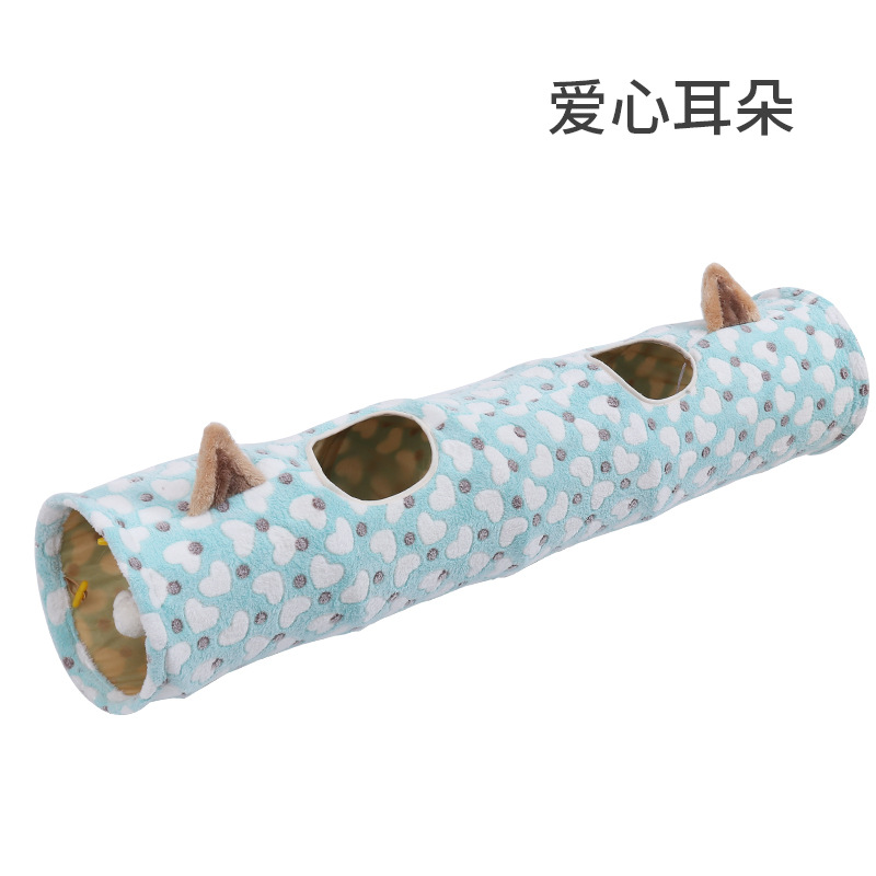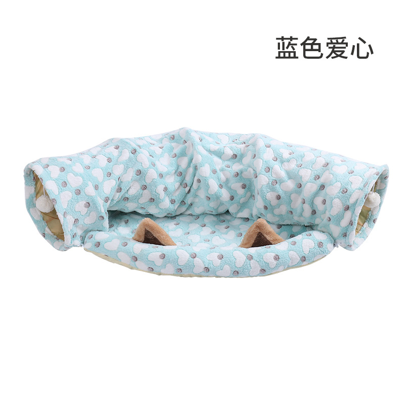 Manufacturer's stock: Blue and white heart-shaped foldable cat tunnel toys, durable cat tunnel bed, self-entertaining cat toys