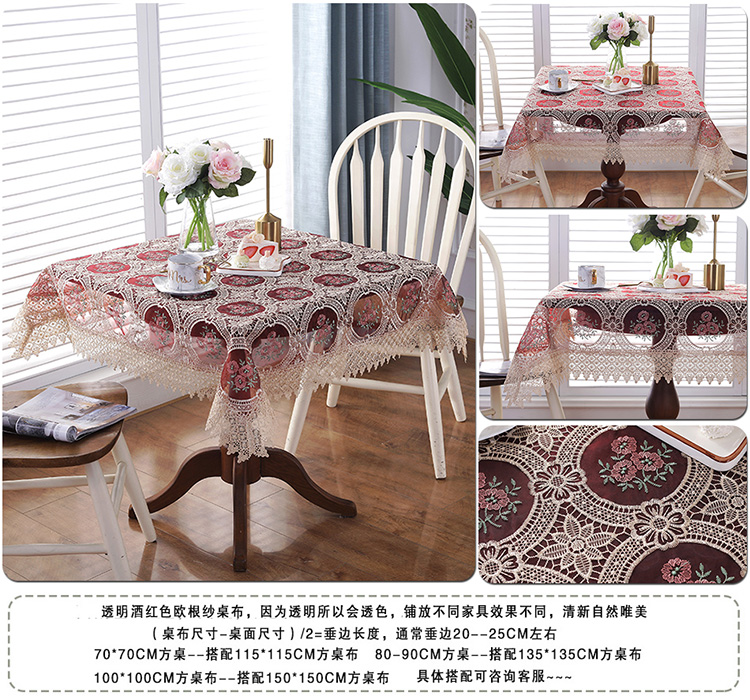 wine red: tablecloth size with lace is wrong, no refund