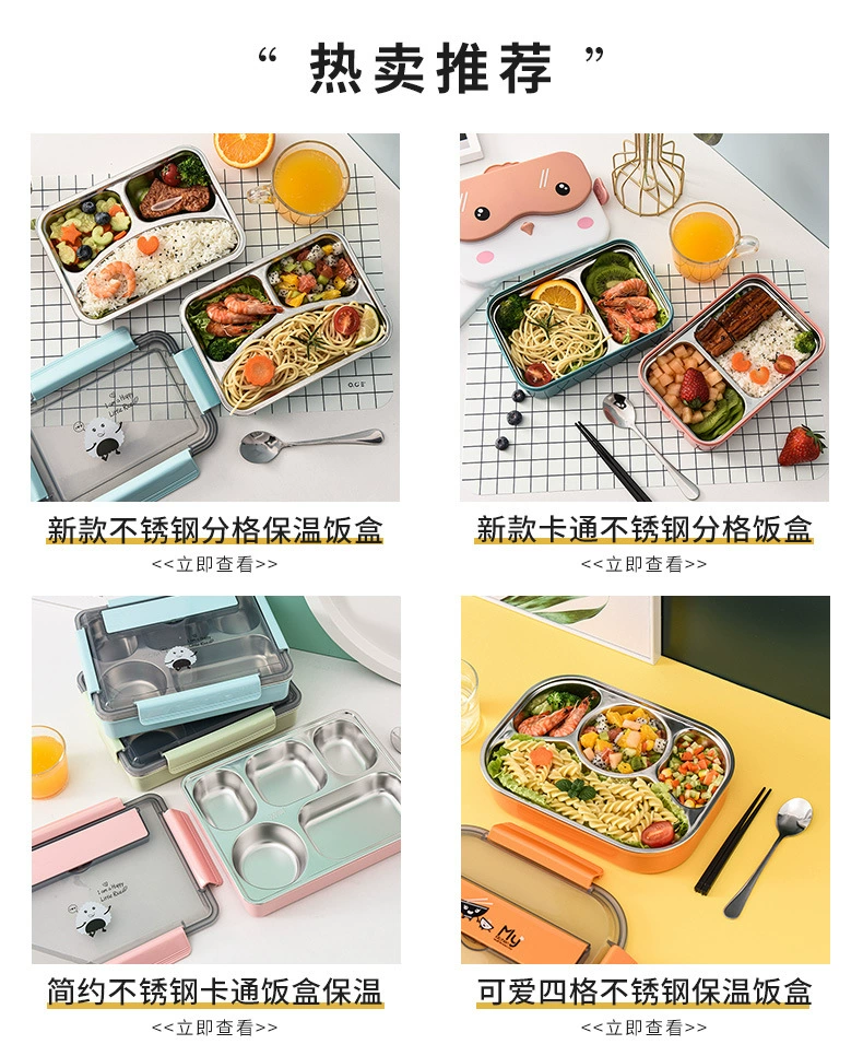 new stainless steel lunch box cartoon cute microwave oven lunch box compartment insulation portable plastic lunch box factory wholesale 中文版