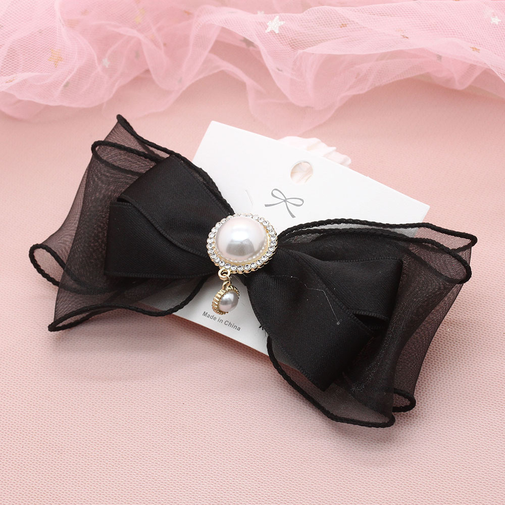 japanese and korean new mesh bow hairpin back head hairpin round diamond top clip net red hairpin lace spring clip female