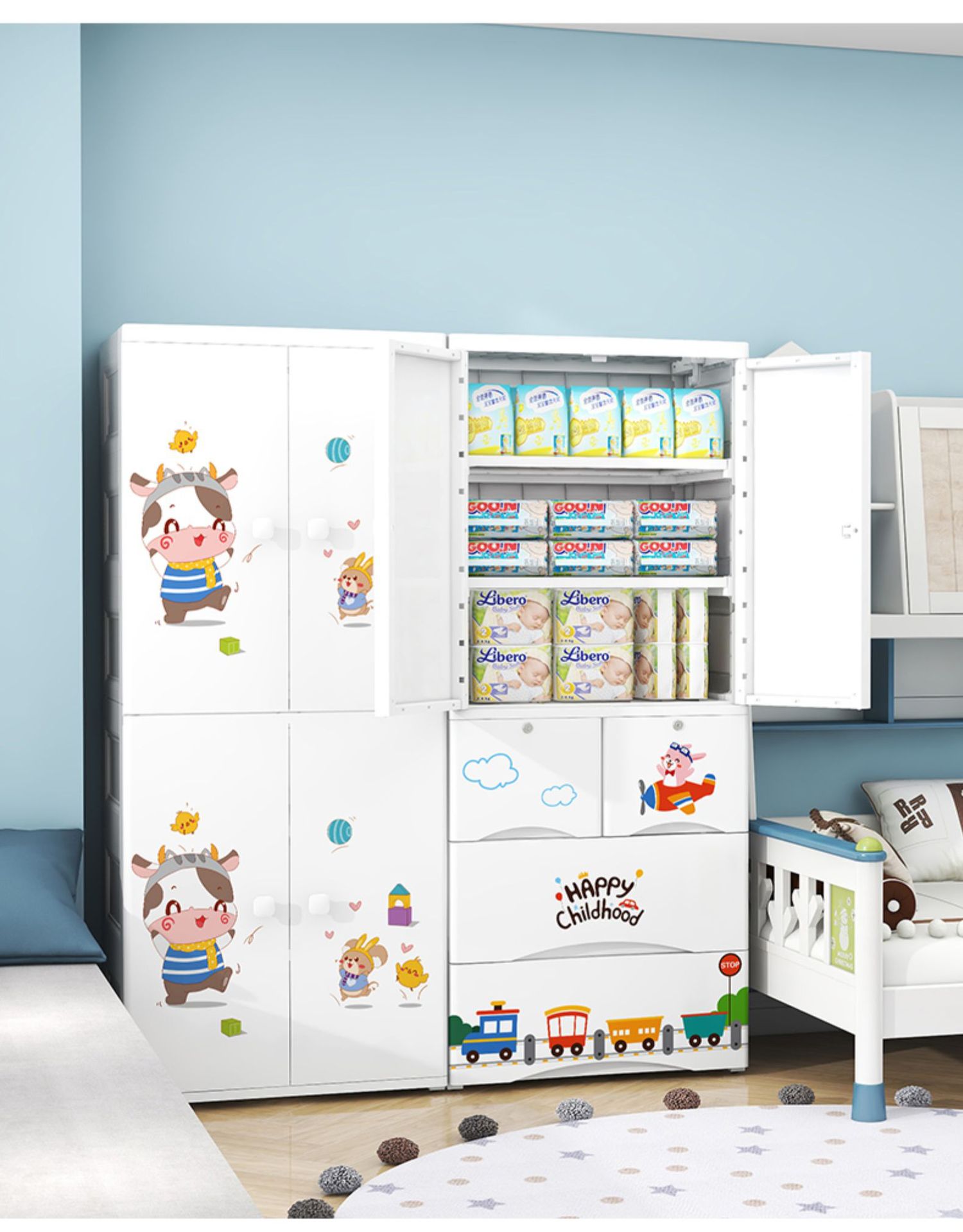 four-layer compartment dual-use + small drawer + two big drawers [dinosaur baby]: 1