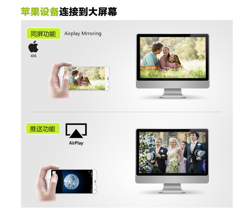 Equipped with mirror and synchronization functions, using WI-FI wireless synchronization technology, no need to install an APP.