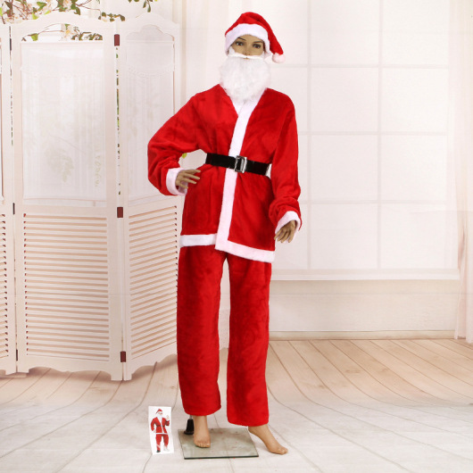 RFM Christmas Men's Clothes Five-Piece Short Plush Thickened Warm Santa Suit Christmas Performance Costumes
