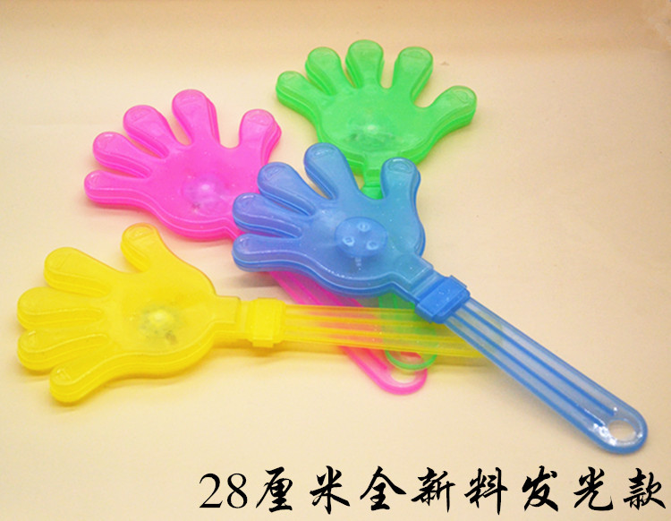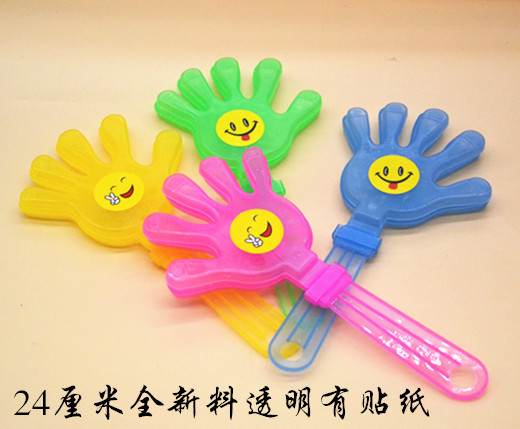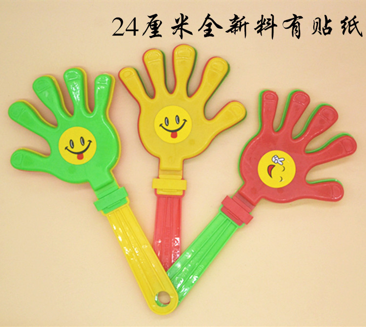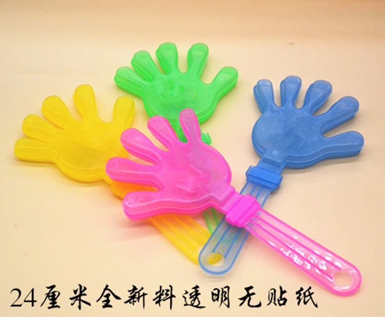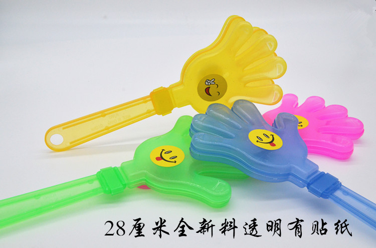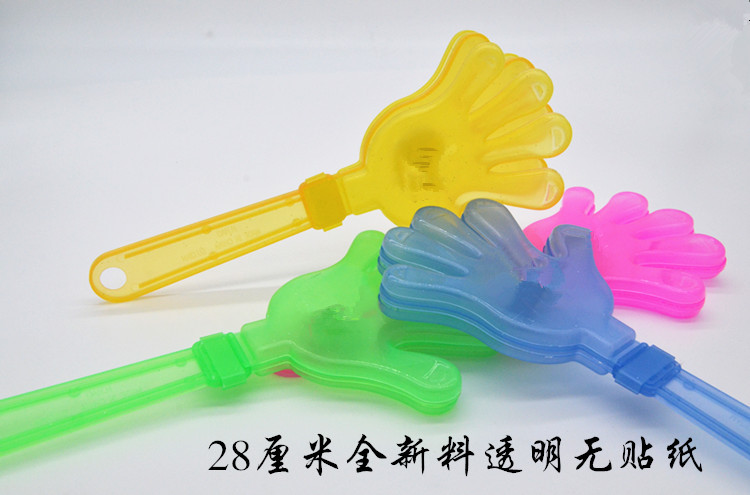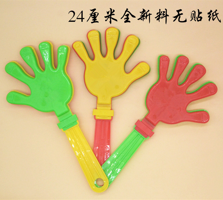 鼓掌的塑料手拍,轻轻摇晃可发出清脆的掌声,每只小手有三片不同颜色的小手组成,轻摇时互相撞击发出清脆的掌声,适用于生日patty.班级晚会.学校活动.社团活动.公司活动.万人晚会.婚庆等喜庆活动的用品,非常可爱。
