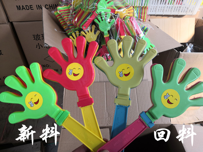 拍手器由三片手掌混合组成,发光拍手器为单色,其他的型号的为不同颜色混合组装。