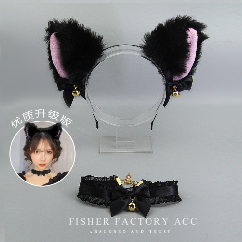 white pointed black cat ear headband