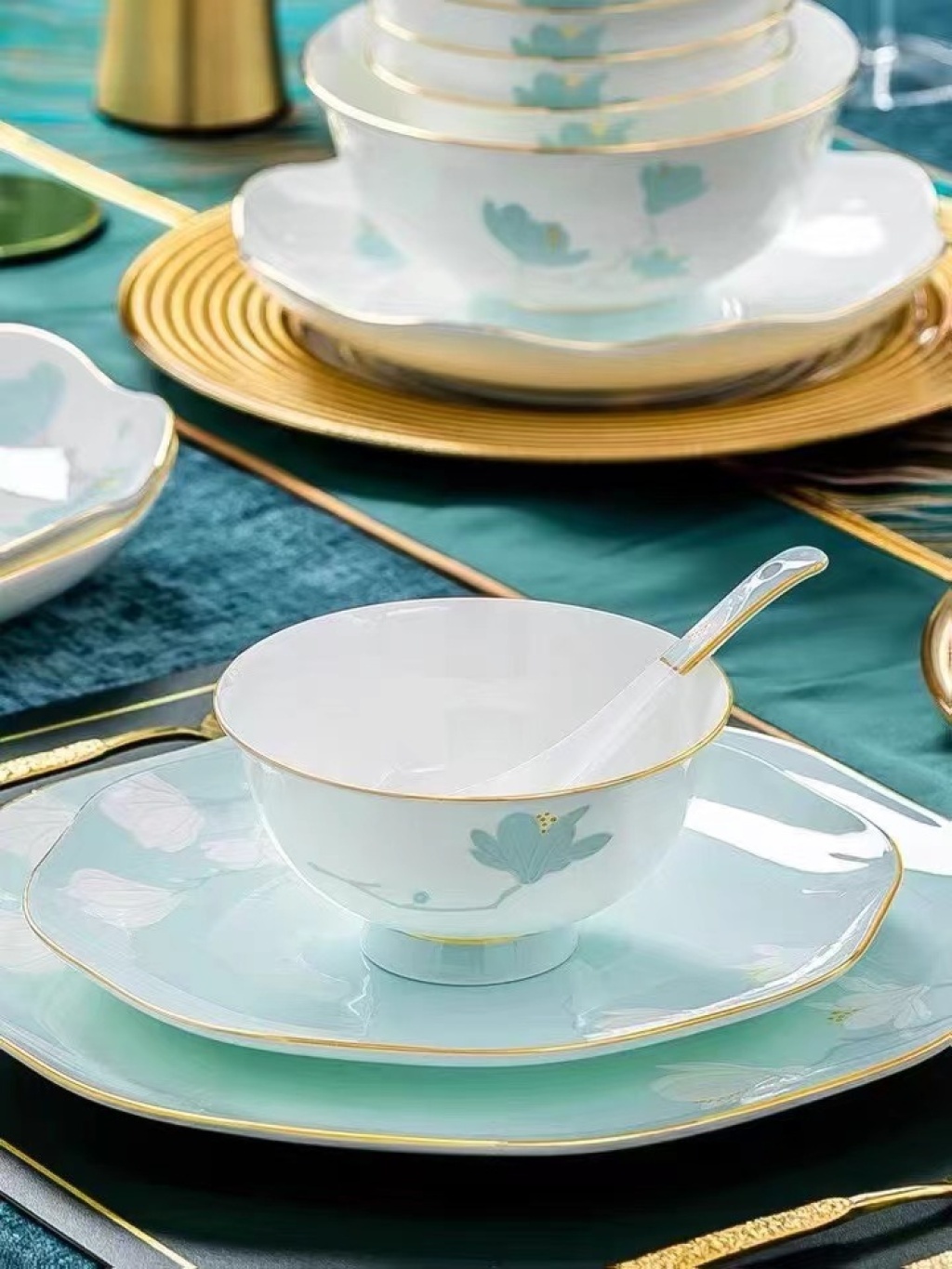 High bone china tableware, pure hand-painted, never fades, fired at high temperature of 1380 degrees, gift box packaging, welcome to inquire for wholesale and retail. Please contact via WeChat at 15727967942.