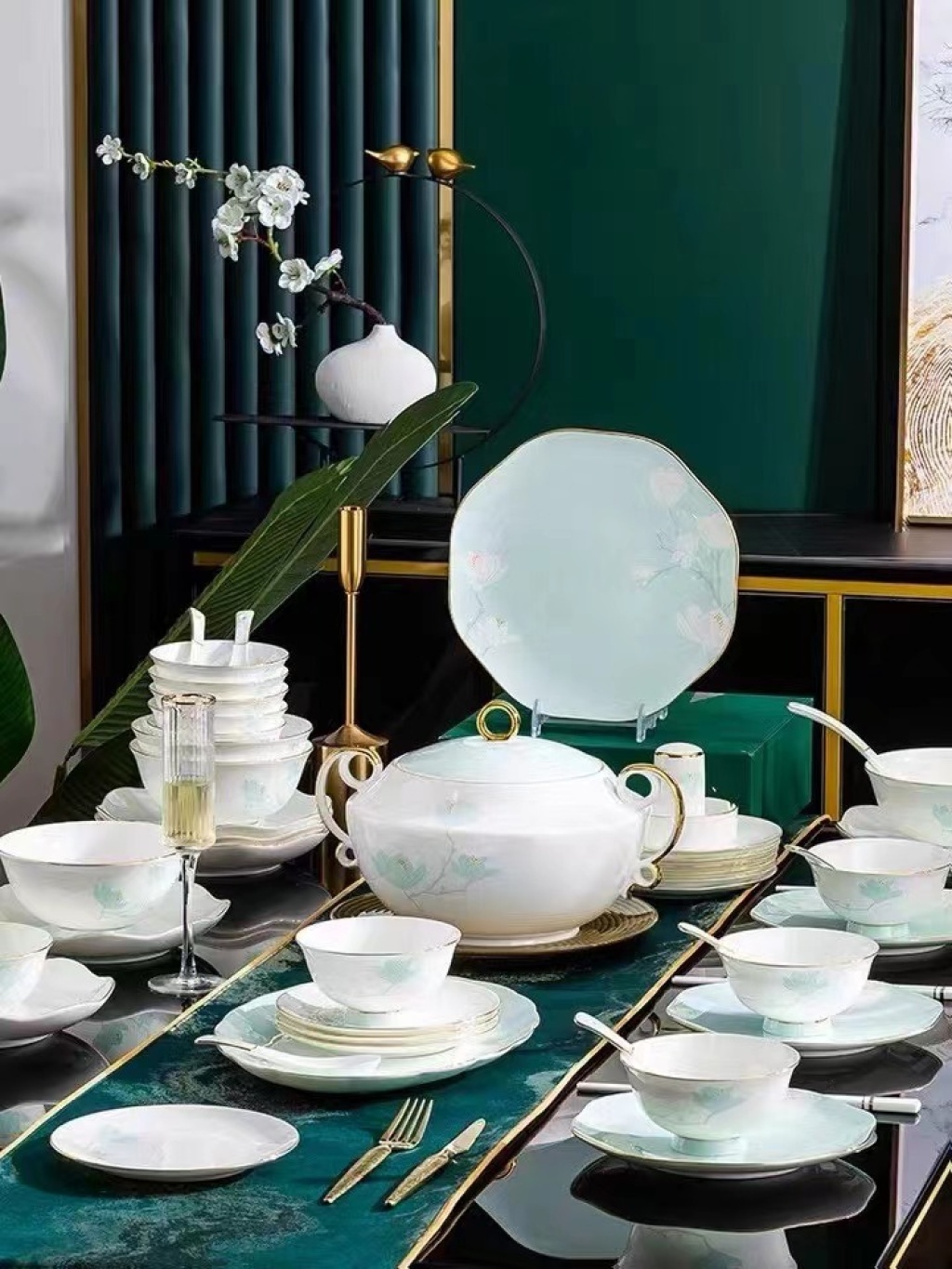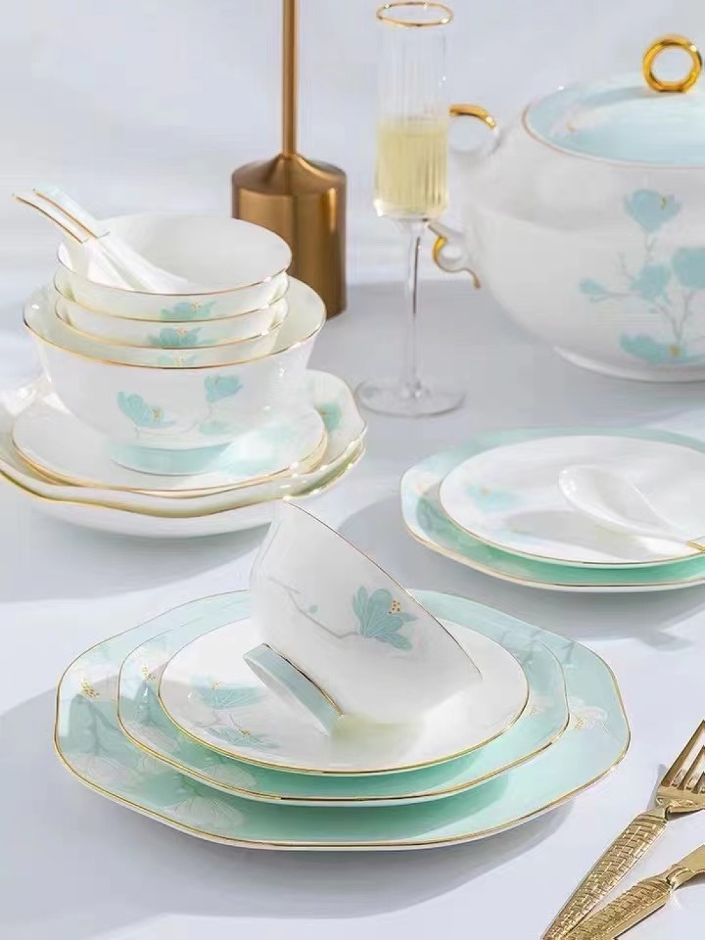 jingdezhen bone china tableware big collection 60 pieces tableware set of dishes and bowls tableware set ceramic tableware set 中文版
