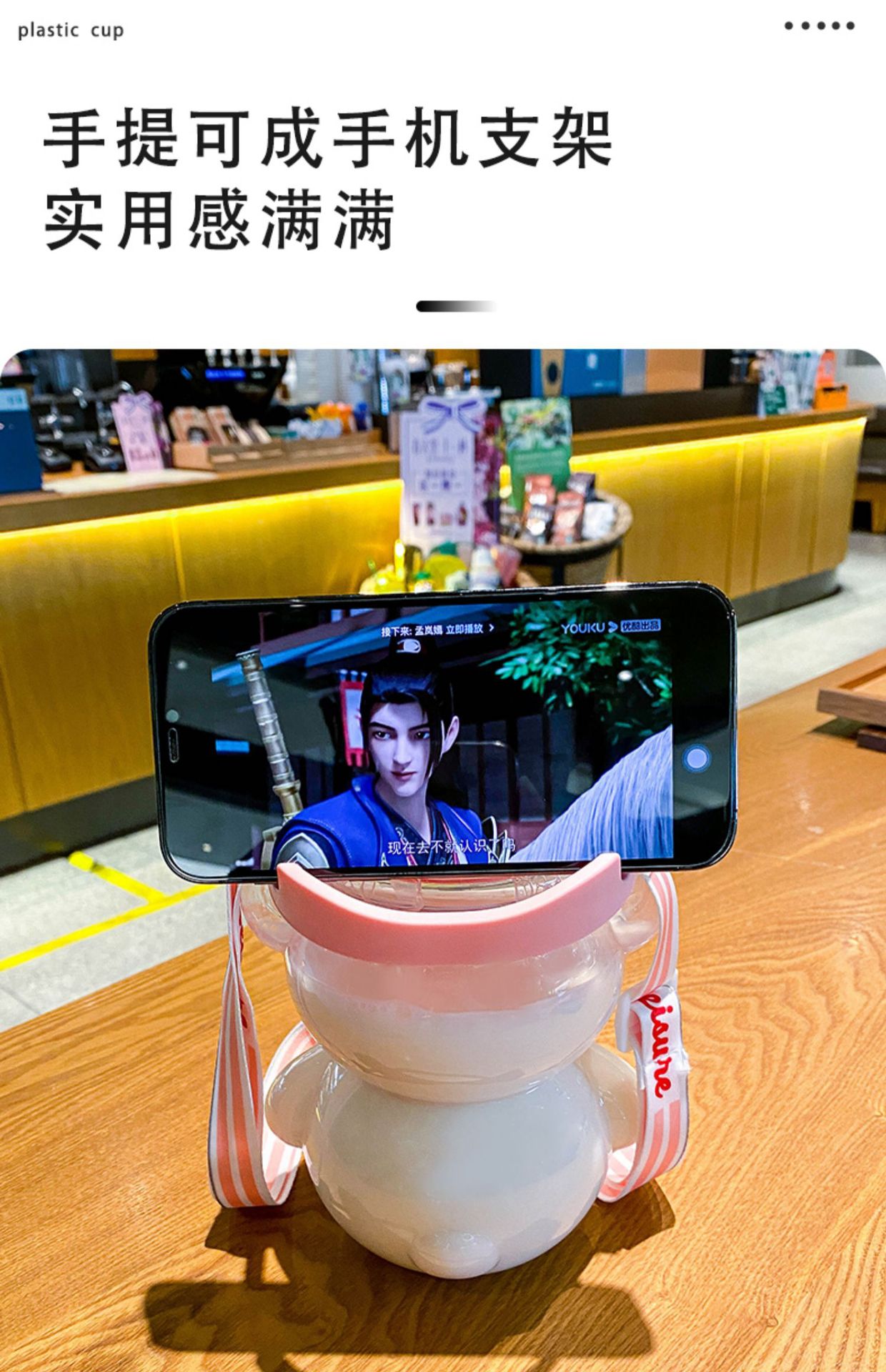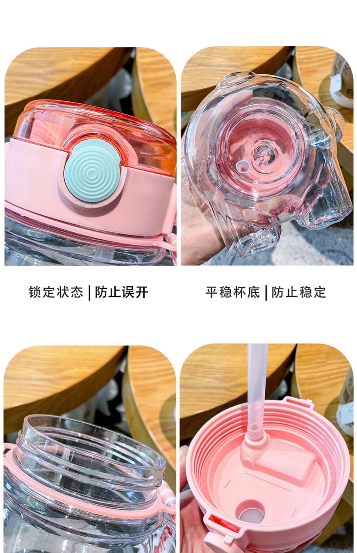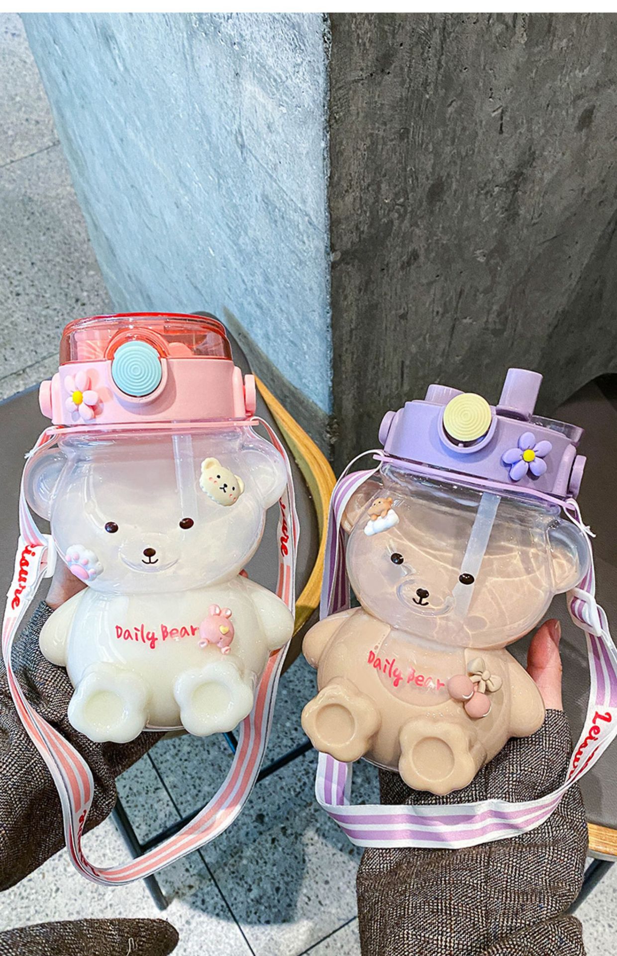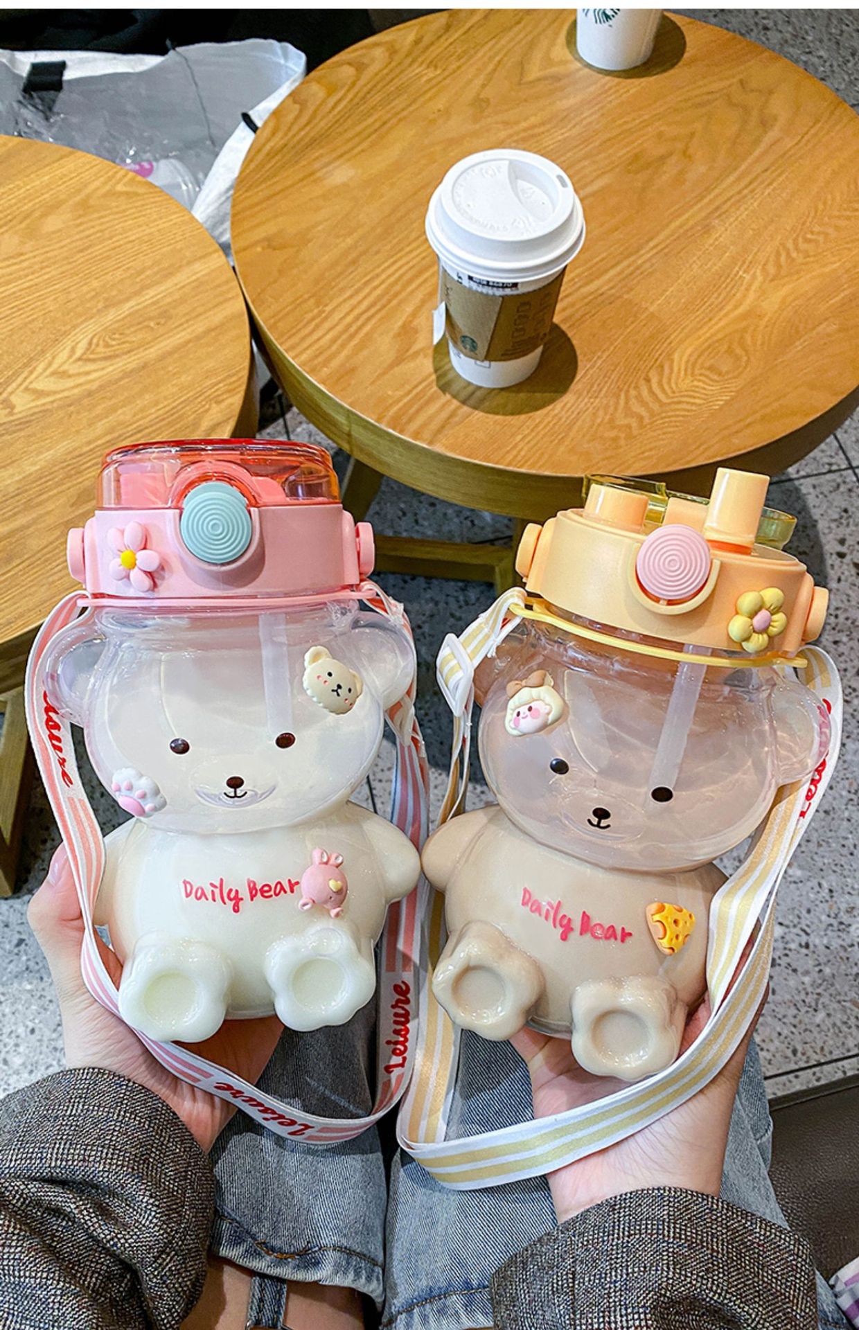 Bear Water Cup Large Capacity Girl Cute Good-looking Cup with Straw Summer Student Portable Strap Double Drink Plastic Cup 中文版