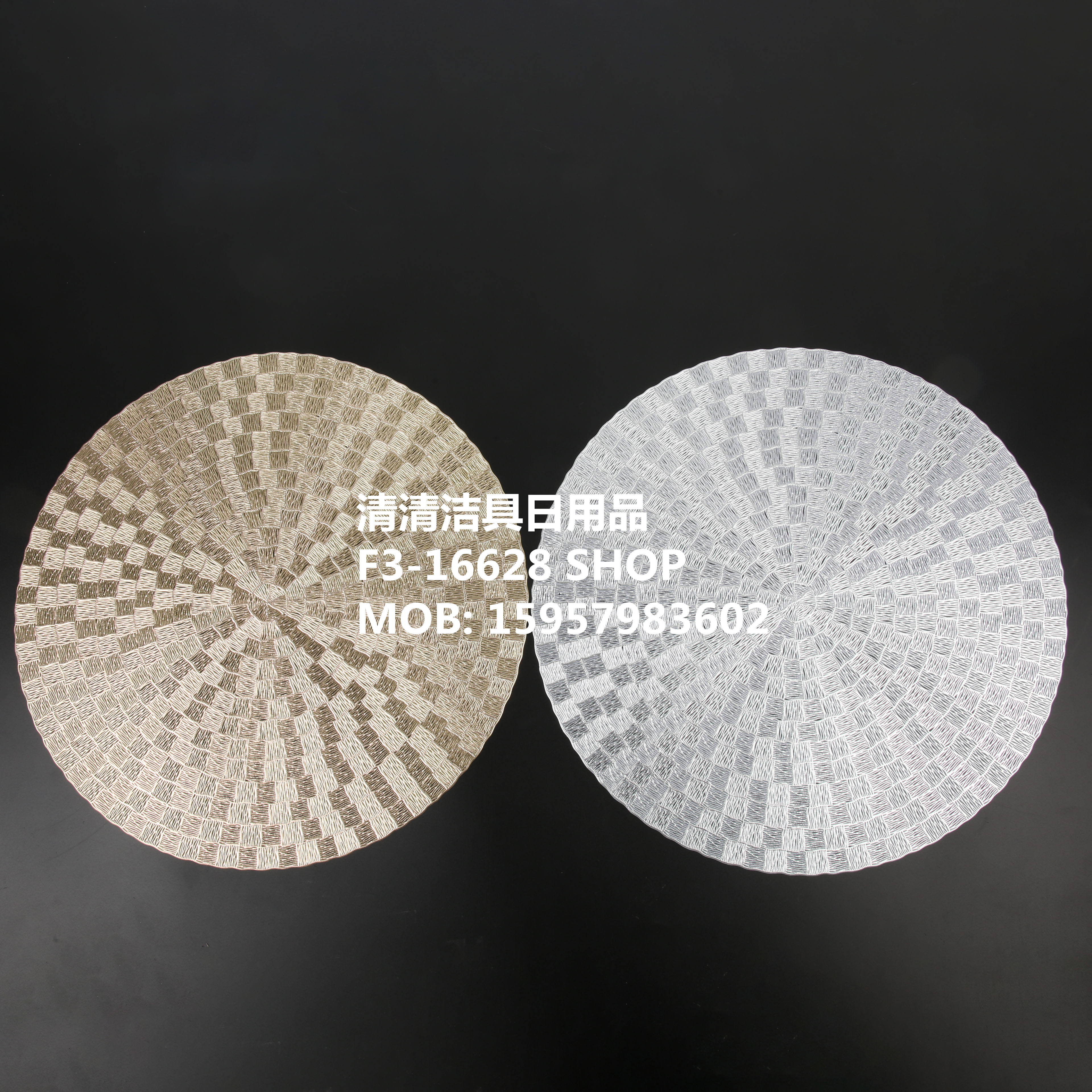 Placemat cup mat PVC placemat European and American placemat, unusual placemat, plastic placemat, gold and silver placemat. Please inquire for the price.