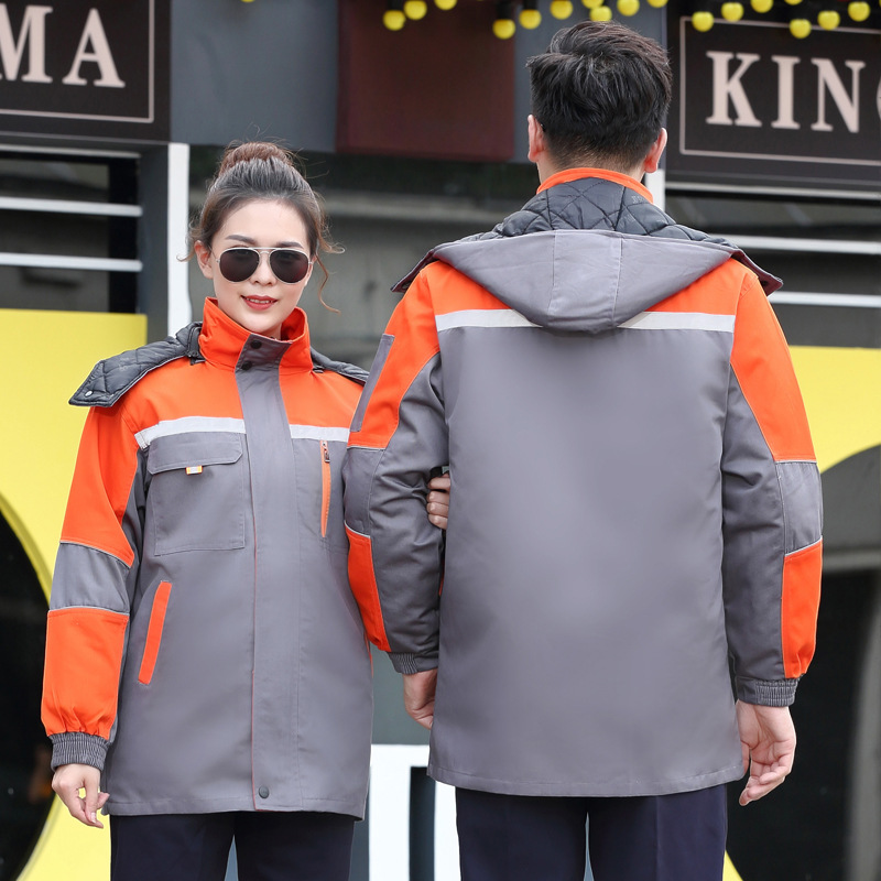 five-generation three-open upper orange & lower gray cotton-padded jacket: 175
