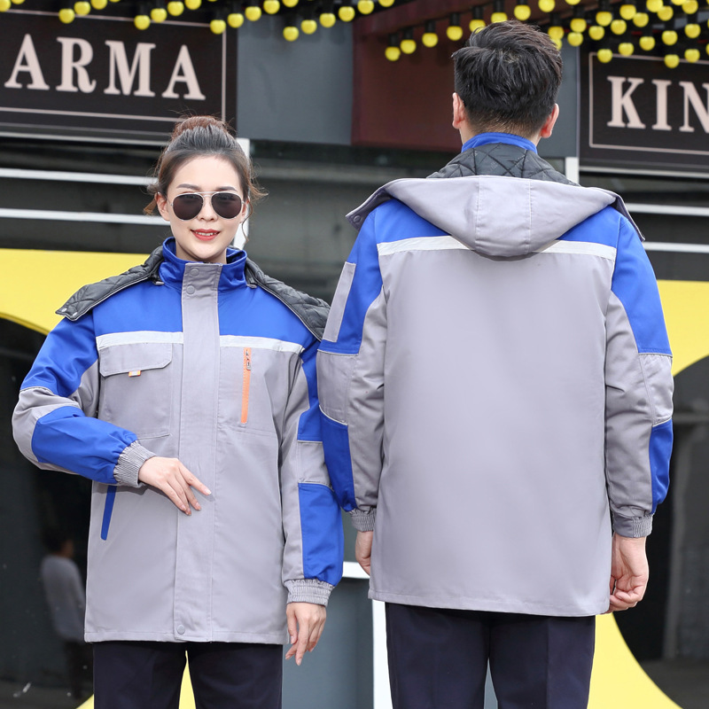 five-generation three-open gray cotton-padded jacket with bright blue: 170