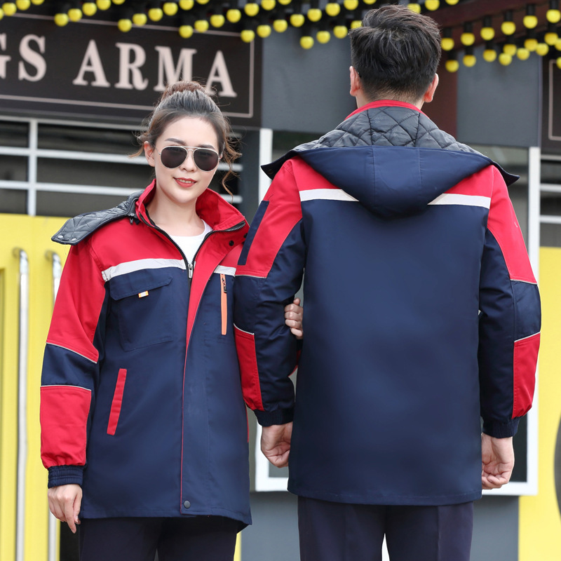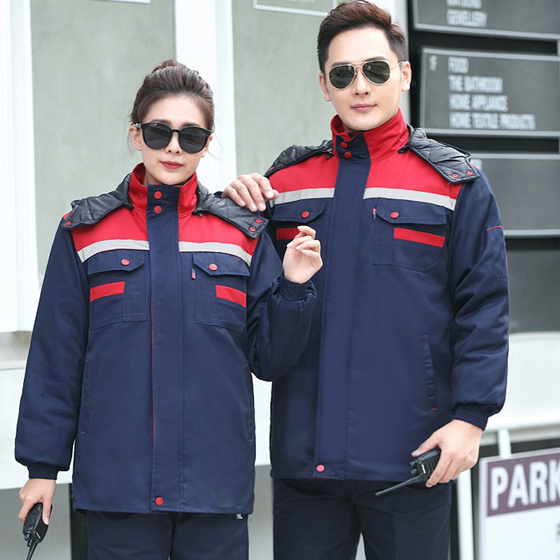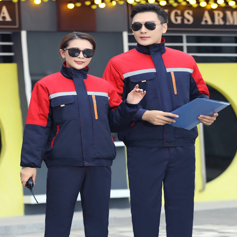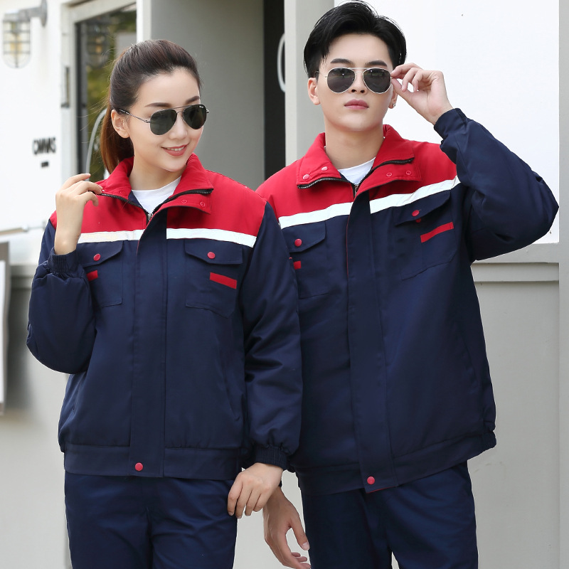horn three open red top and blue bottoms cotton-padded coat: 160