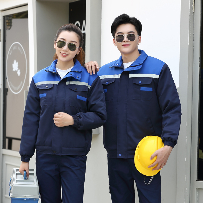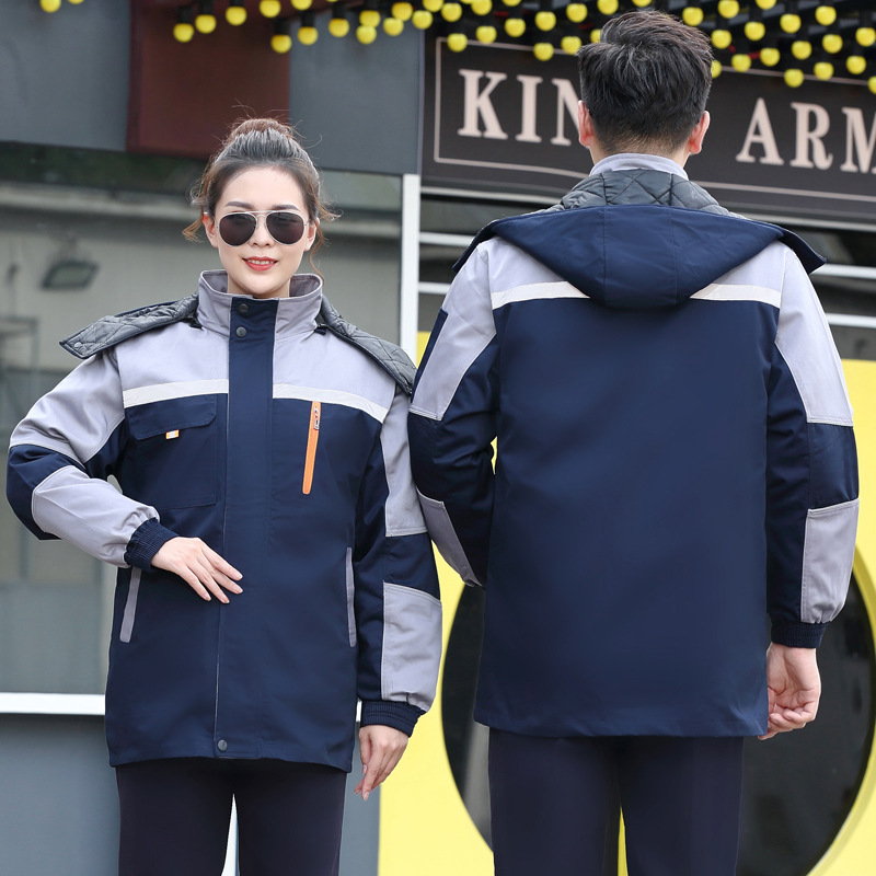 five-generation three-open gray cotton-padded jacket with bright blue: 165