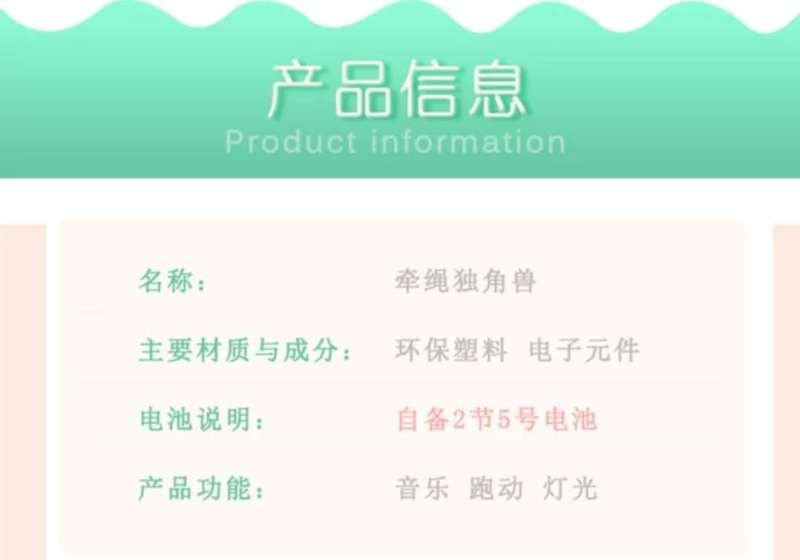 电动牵绳独角兽 装两节5号电池(电池自备)