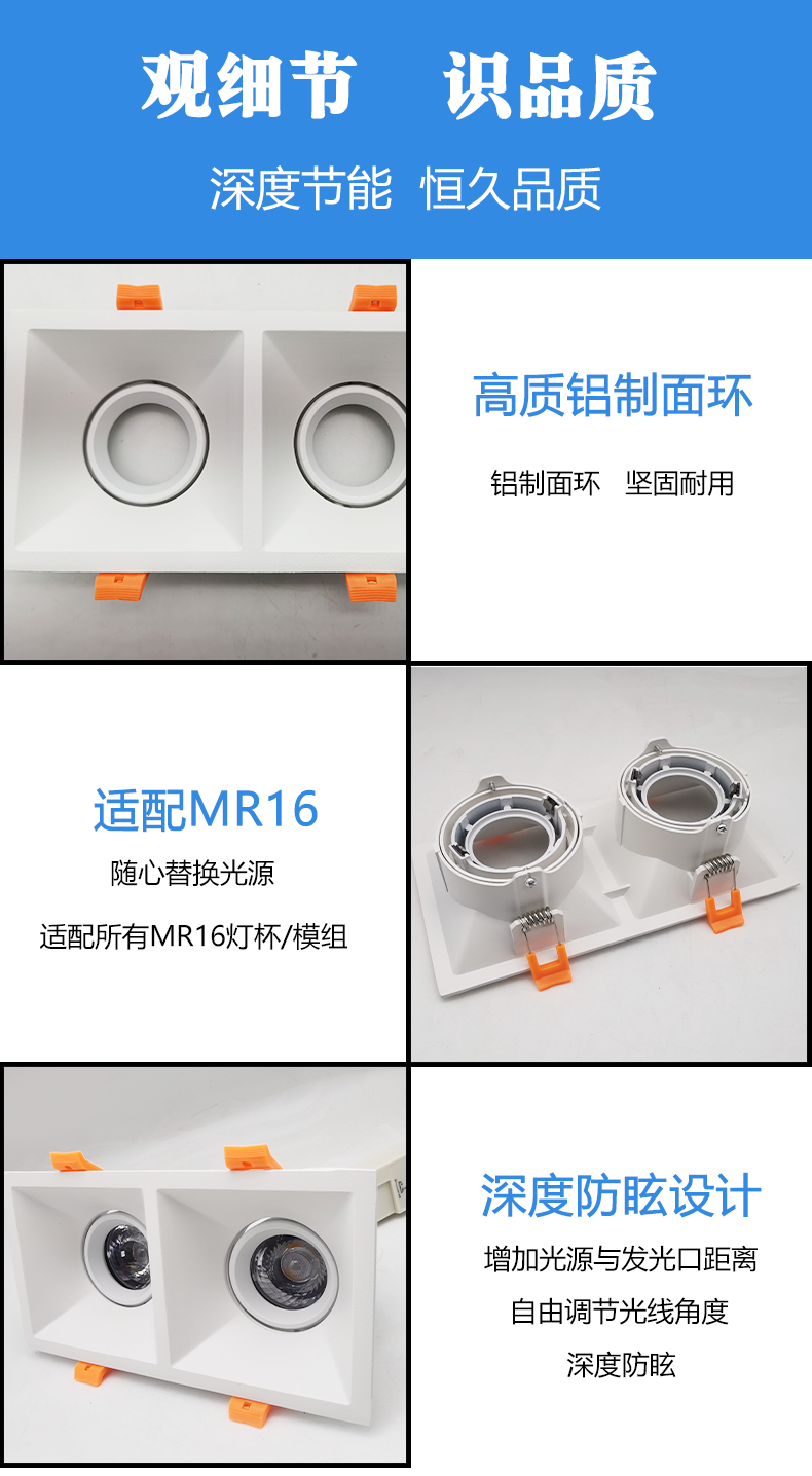shenheng anti-glare two-head headless lamp ceiling light surface ring adapted to mr16/gu10 lamp cup module 中文版