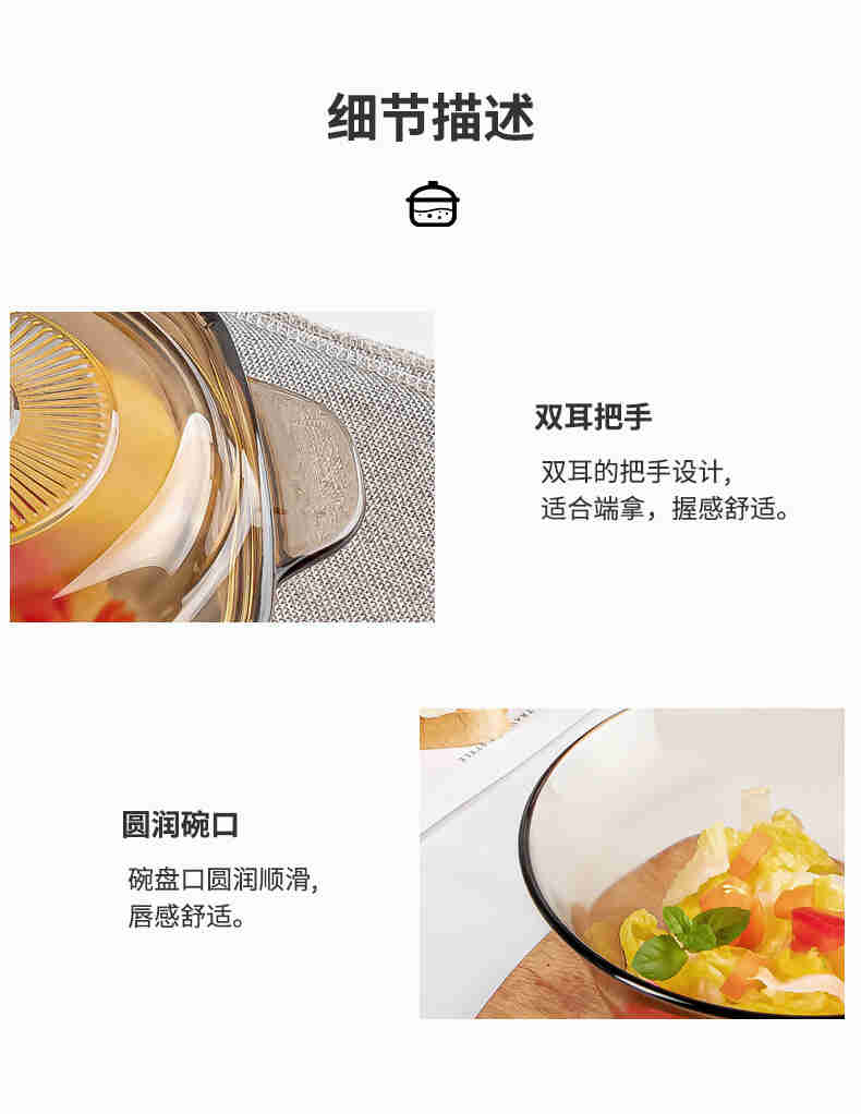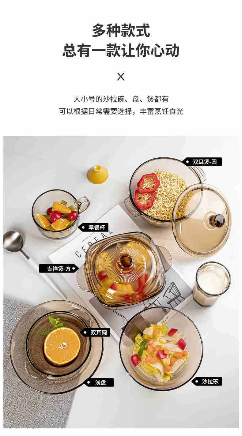 lws european-style brown glass bowl set high temperature resistant double-ear bowl rice and soup bowl instant noodle bowl salad bowl milk 中文版