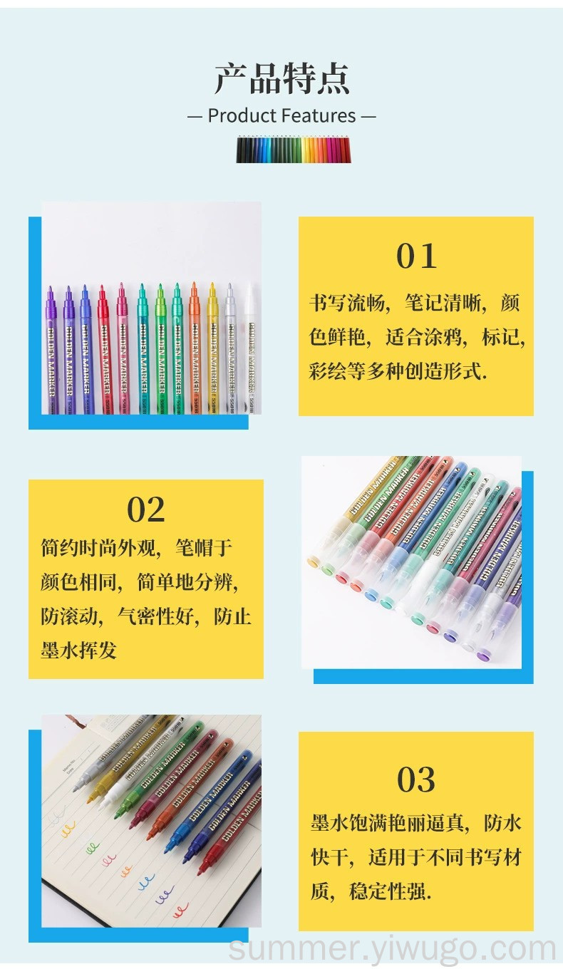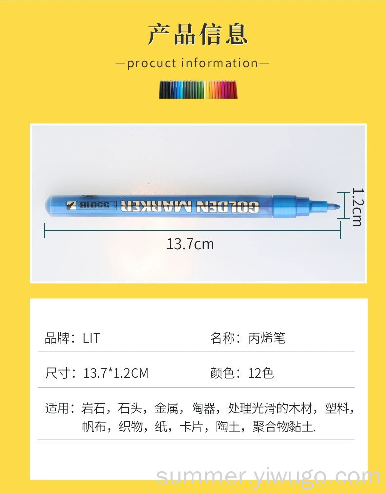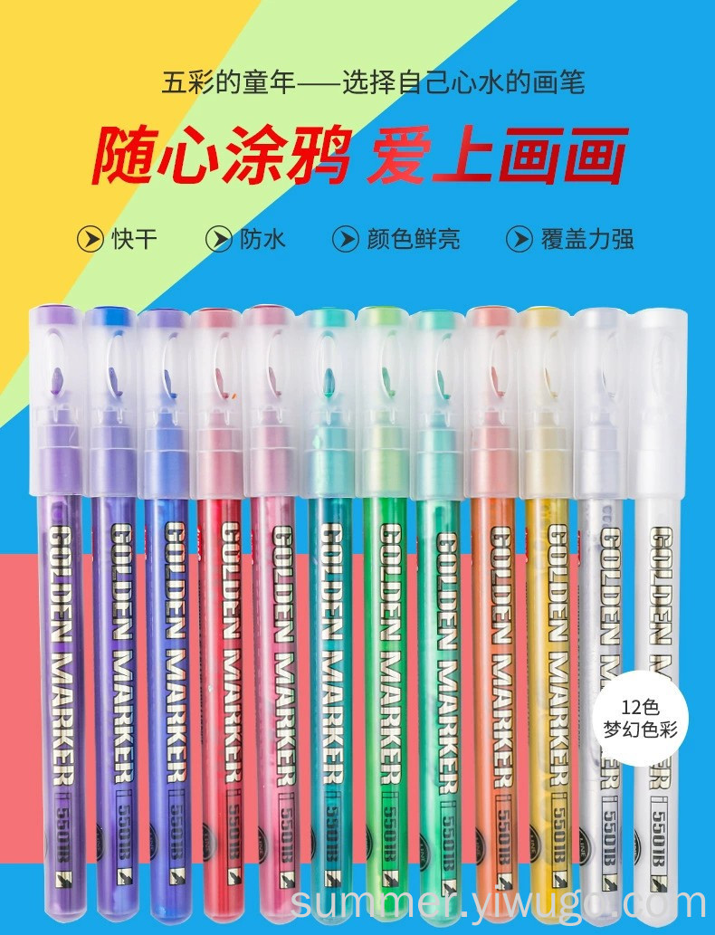 metal color marker pen valve type metal painting pen 12 color pen type writing brush 0.7mm acrylic marker pen marker pen 中文版