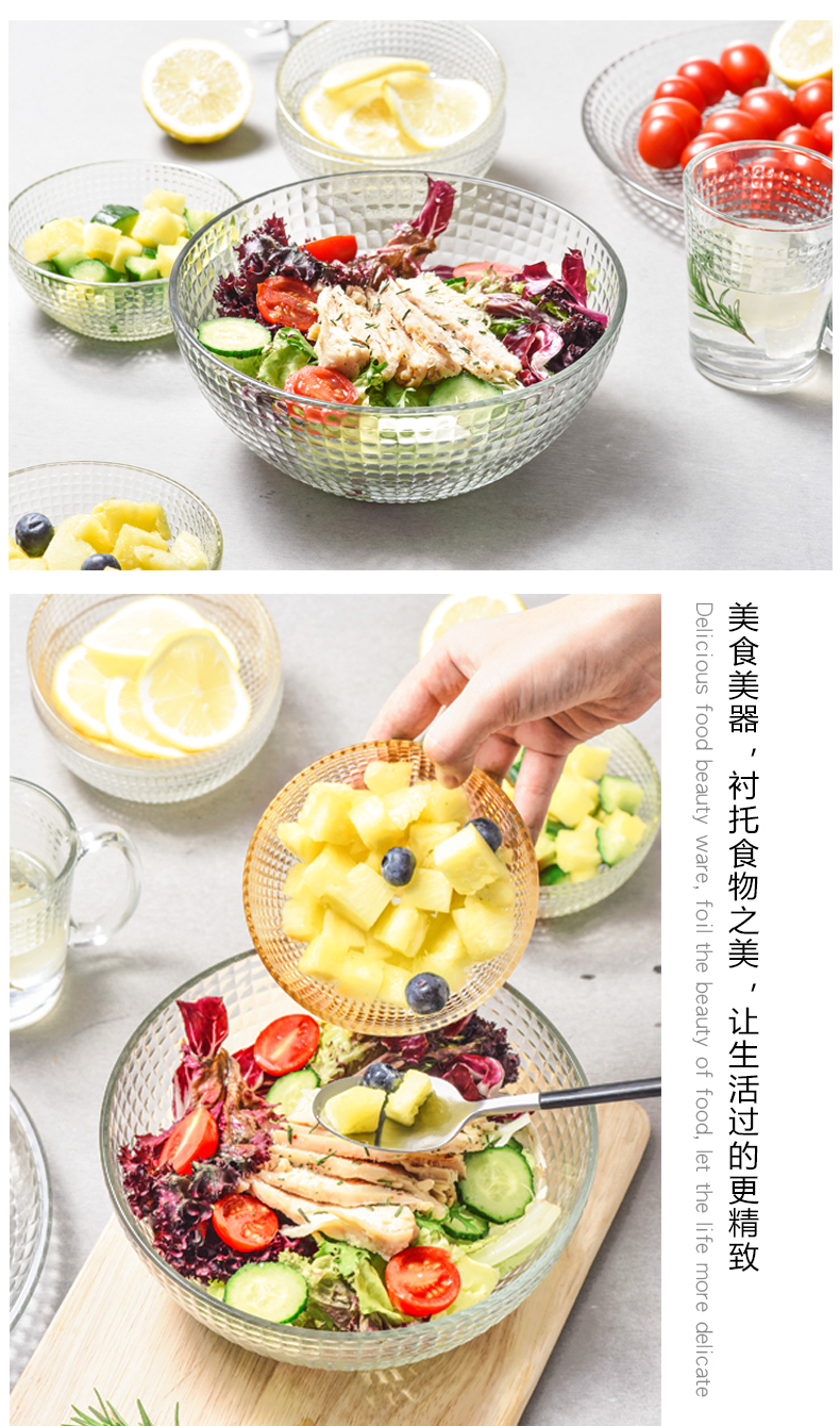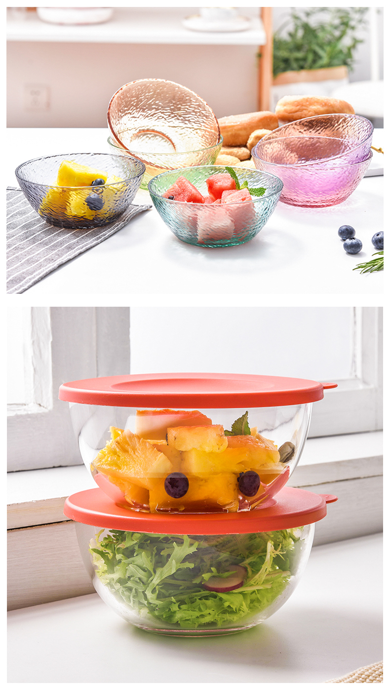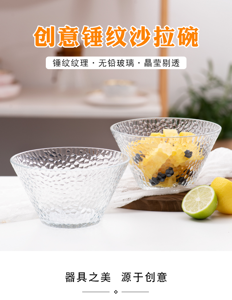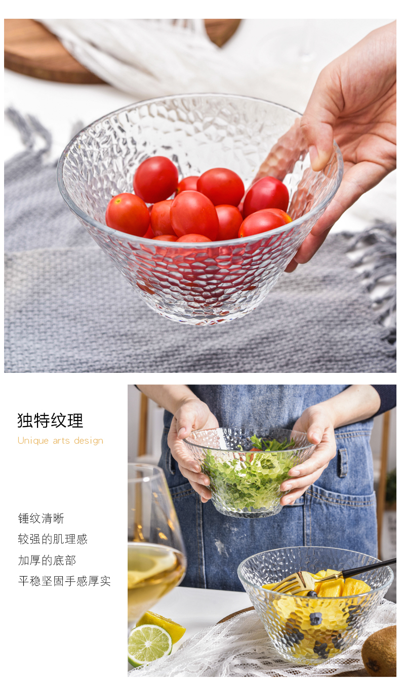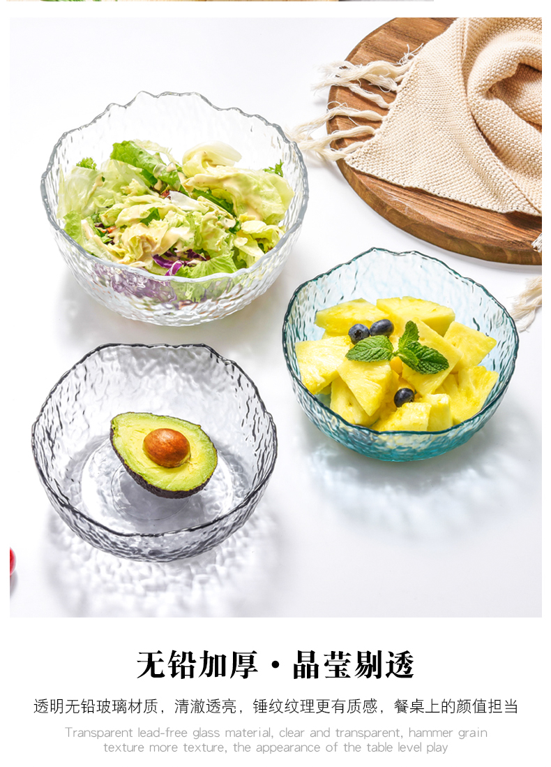 lws japanese style hammer pattern glass bowl fruit plate vegetable salad bowl plate household creative dessert bowl 中文版