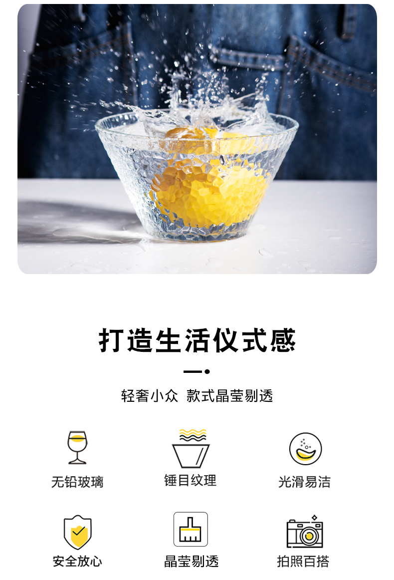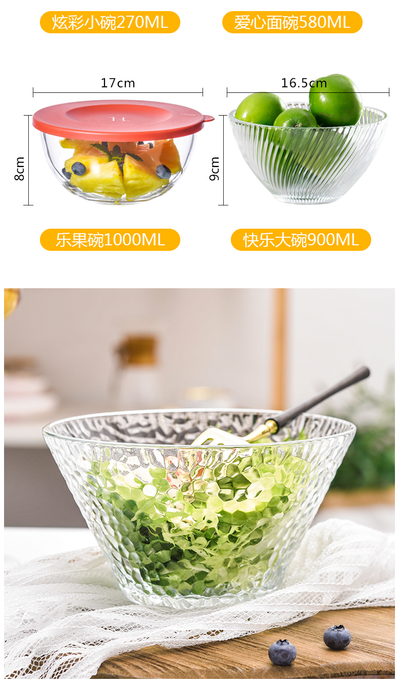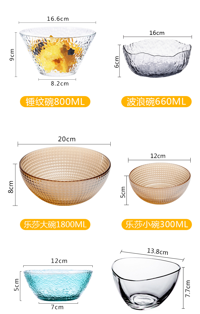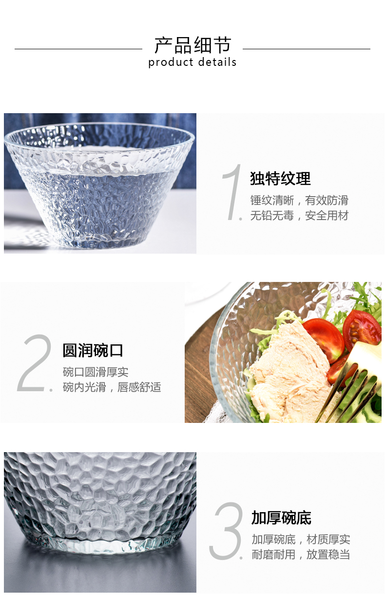 lws japanese style hammer pattern glass bowl fruit plate vegetable salad bowl plate household creative dessert bowl 中文版