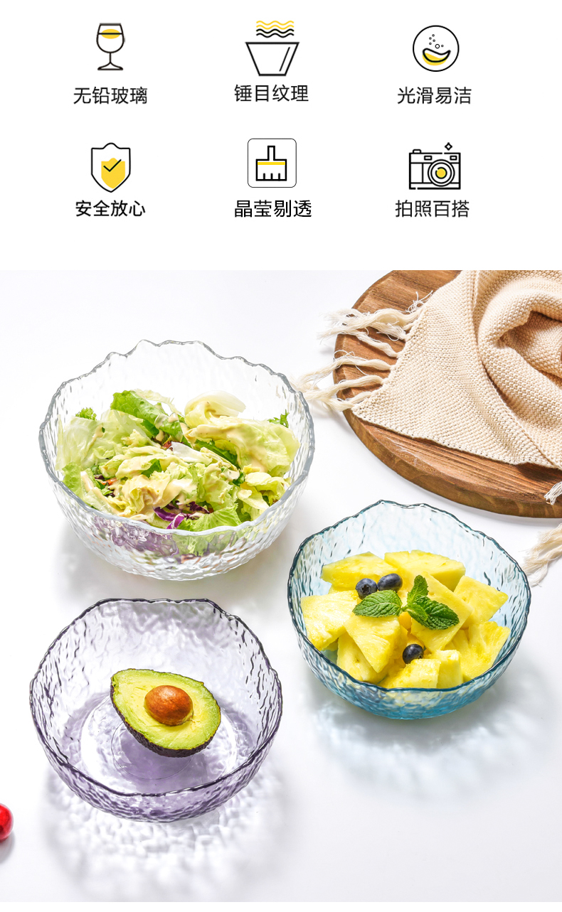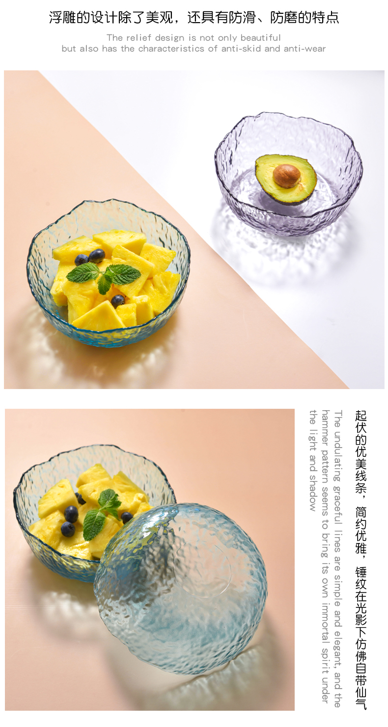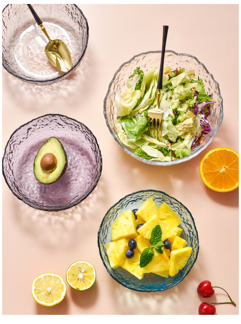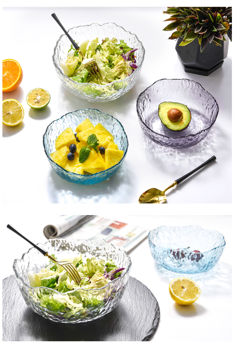 lws japanese style hammer pattern wave glass bowl fruit plate vegetable salad bowl plate household creative trending dessert bowl 中文版